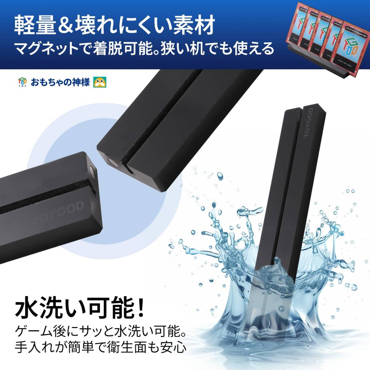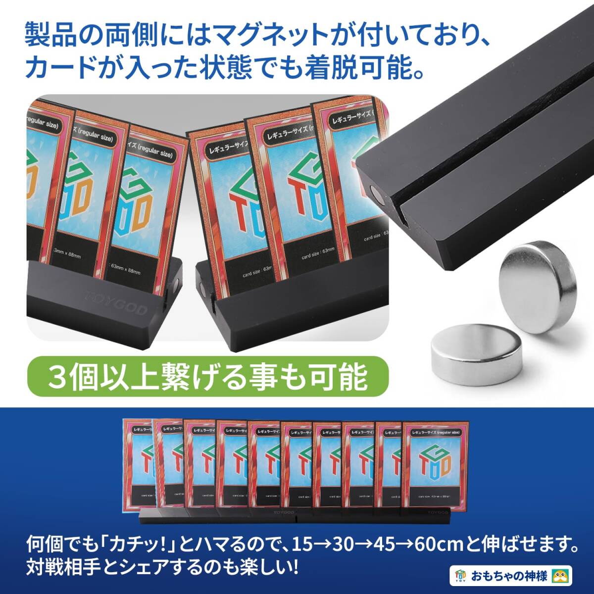おもちゃの神様 カードスタンド 15cm 2個セット カード立て マグネットで簡単着脱 ブラック ボードゲーム カードゲーム 推し活 ディスプレイ など