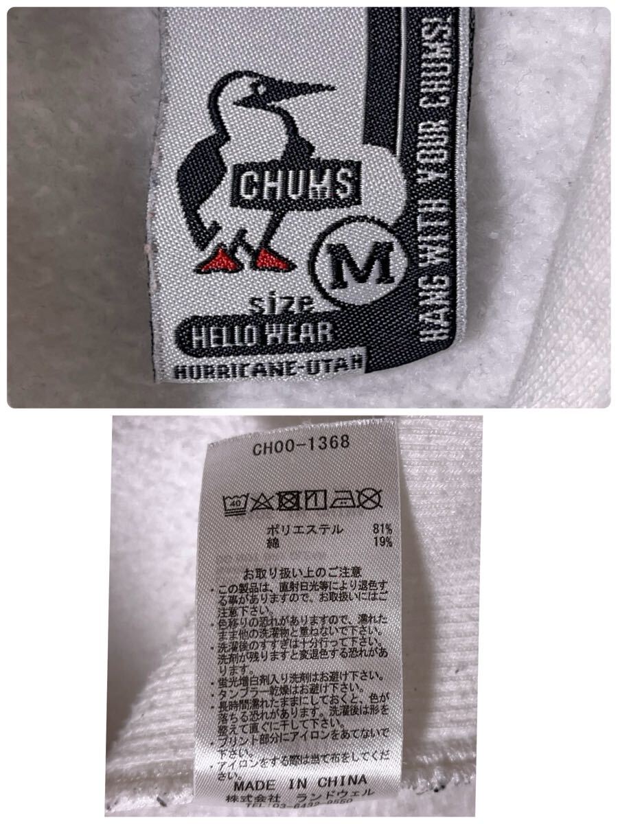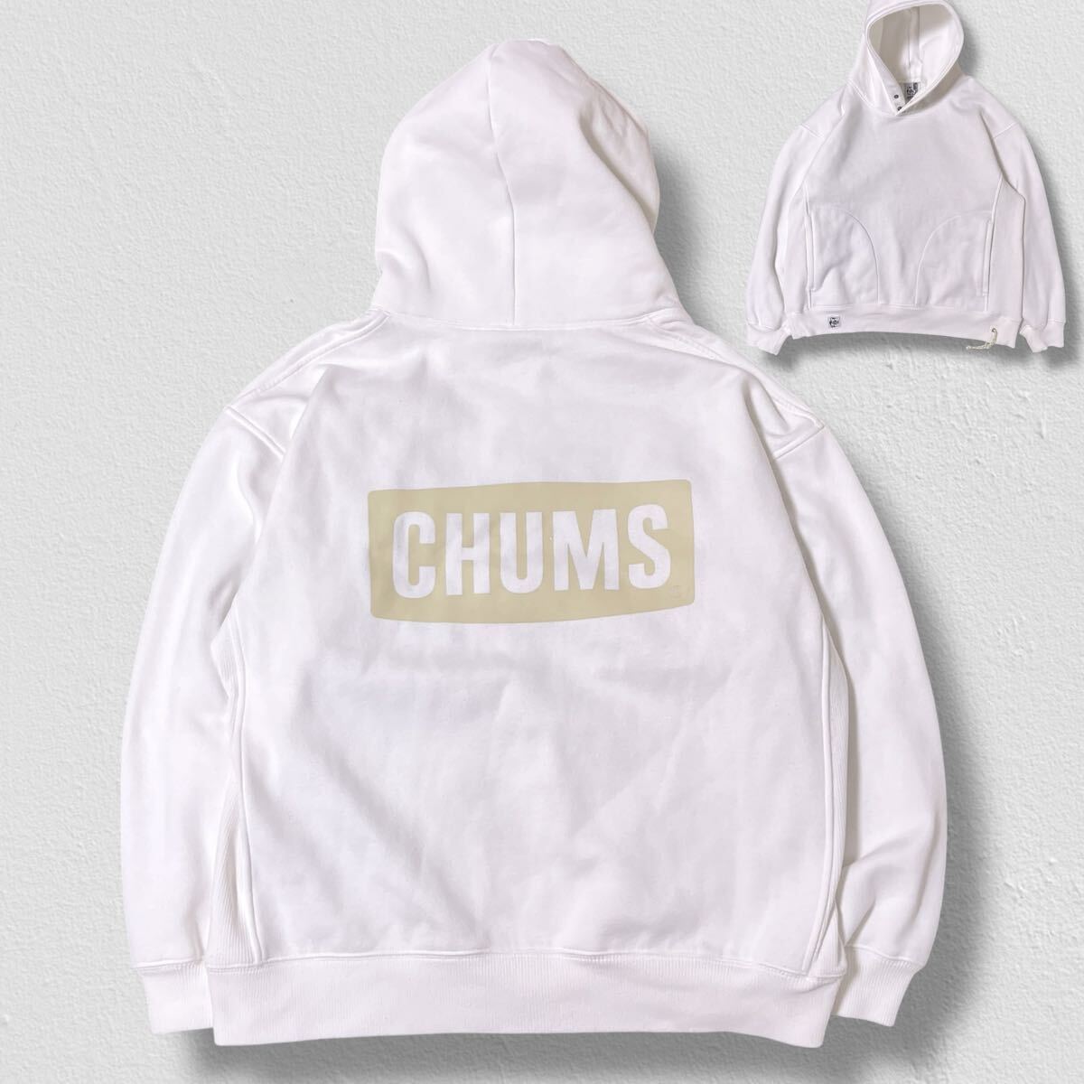 CHUMS 裏起毛 フーディーバックロゴパーカー ホワイト M ●洗濯プレス済● チャムス スウェット プルオーバー 白 古着/695