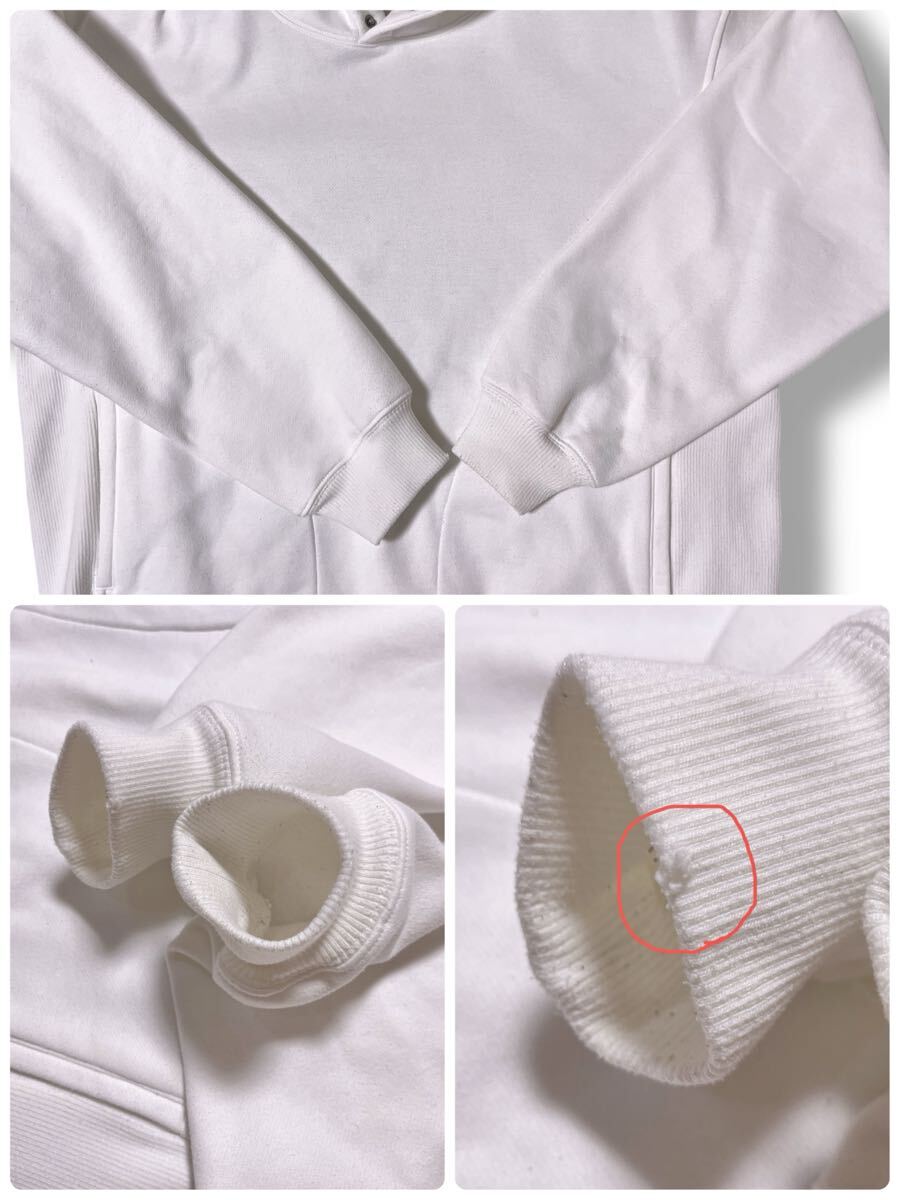 全体的に毛玉や毛羽立ちなどの使用感があります。右袖に穴空きあり。