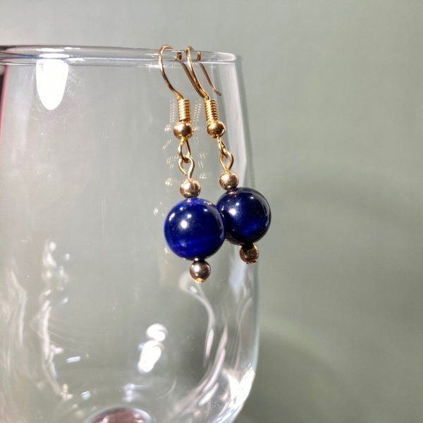こちらは、10mm玉のブルータイガーアイを使用した一粒フックピアスです。シンプルなデザインはシーン問わず、どんなコーディネートにも合わせ易く使い勝手がいいアイテムです。今回は一粒ピアスの要望が多かった為制作しました。気になる方は是非この機会にどうぞ。