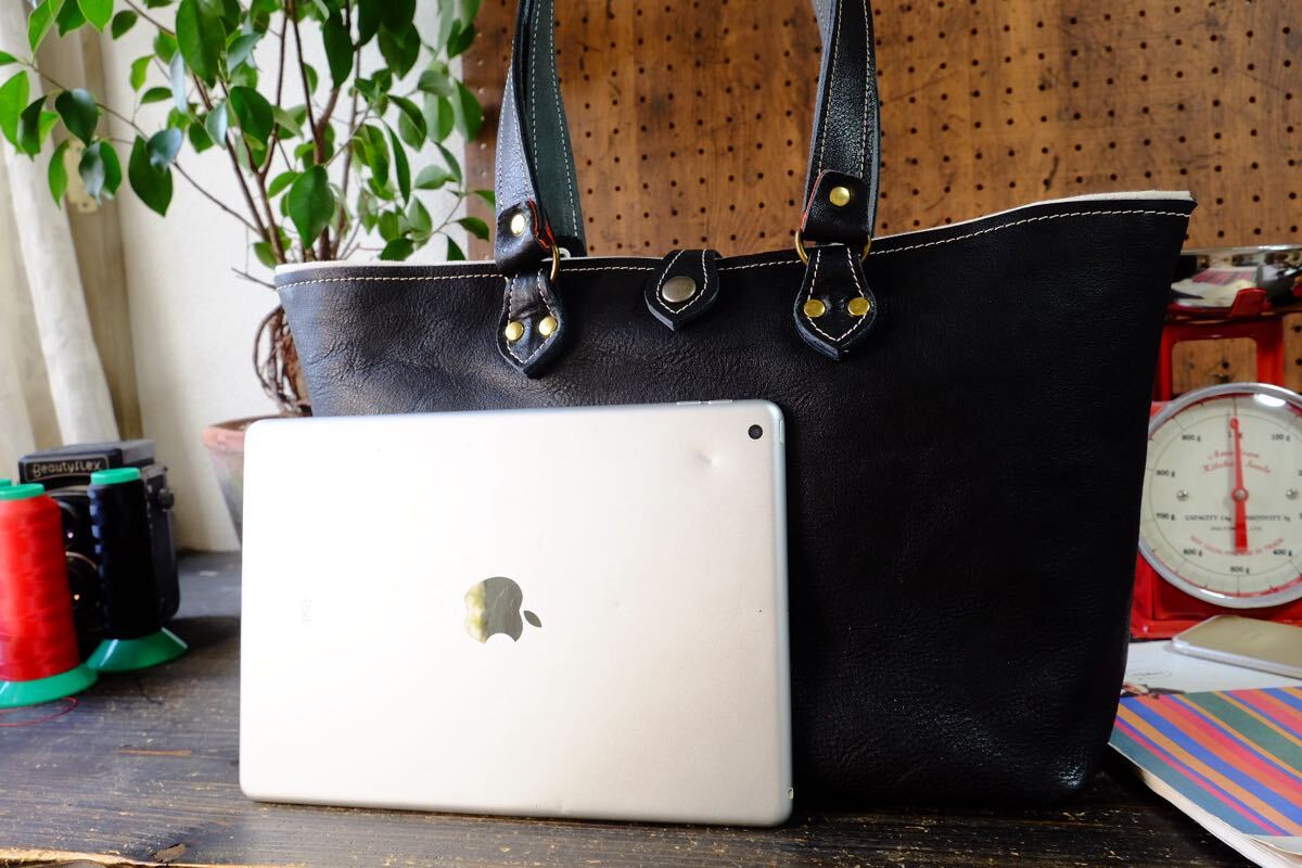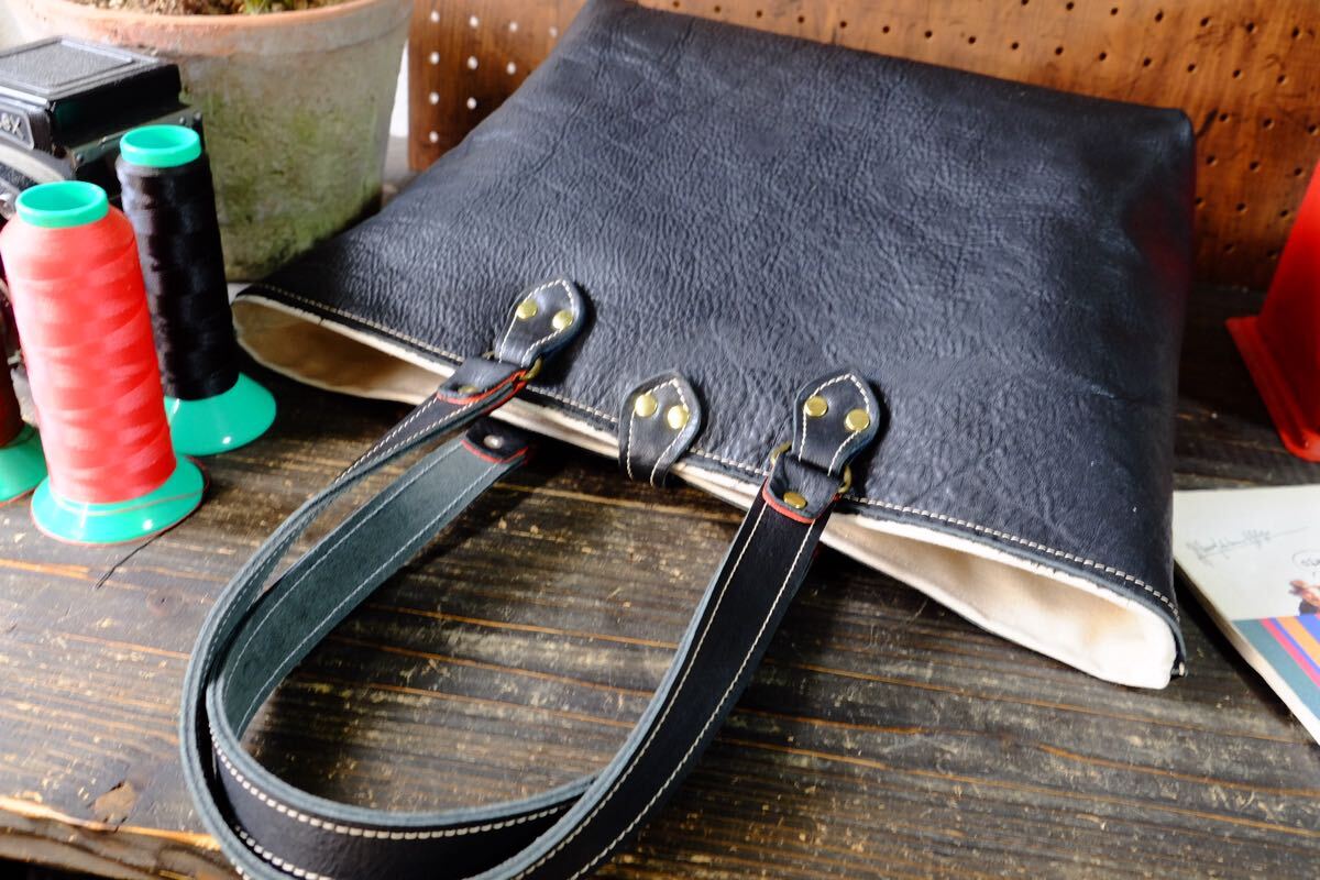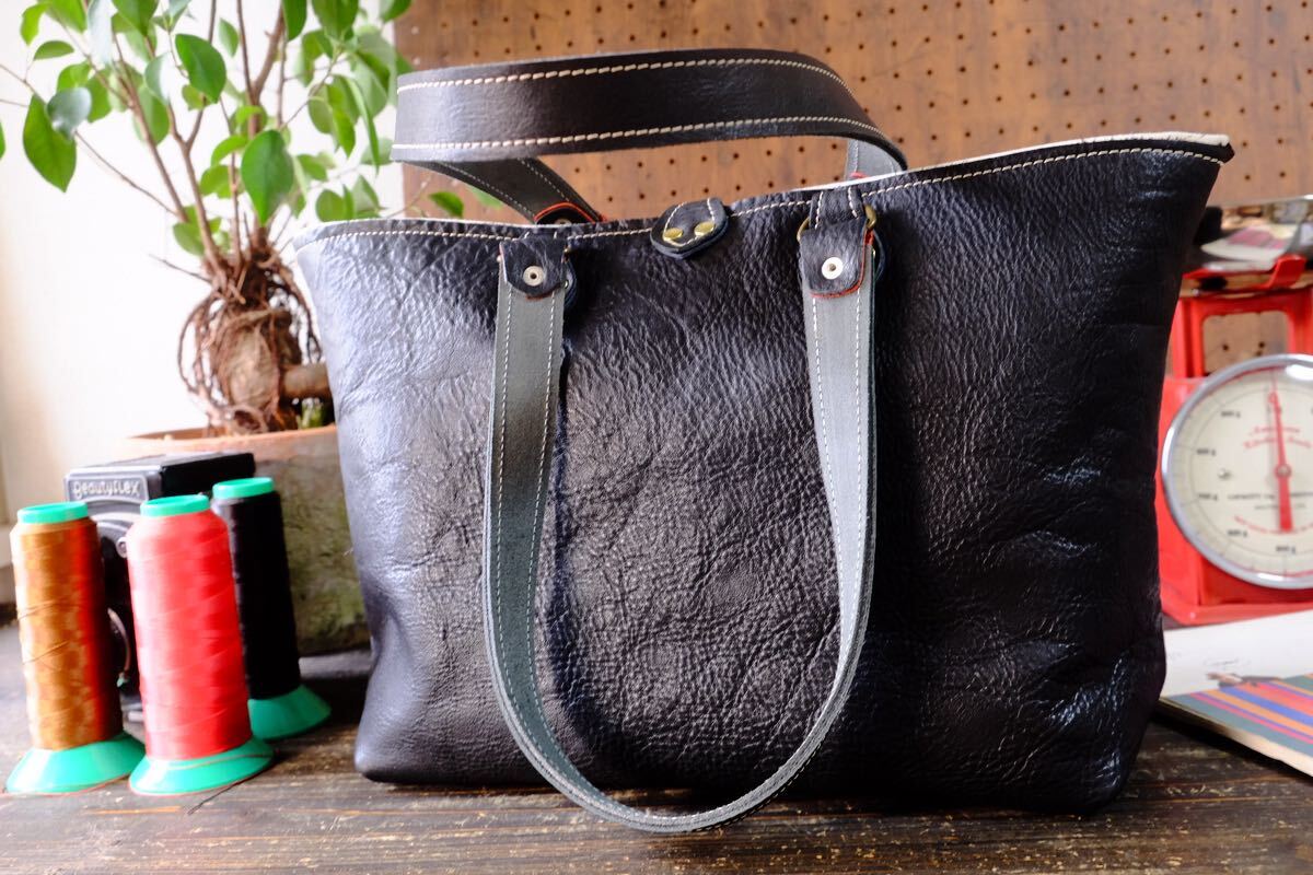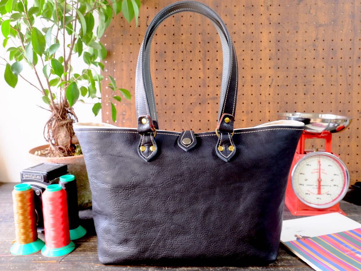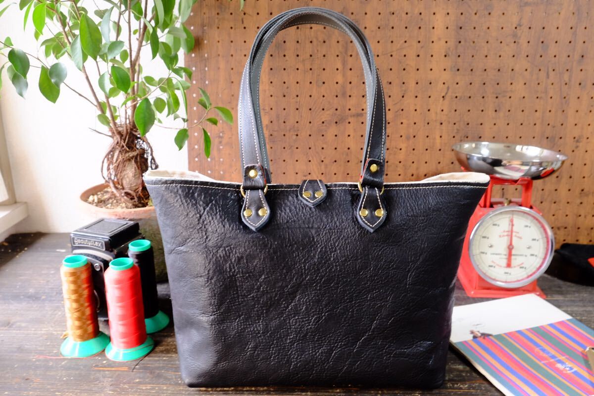 ◆漆黒◇国産ブラックダコタ牛革シュリンクレザートートバッグ Lサイズ 作家手作り★日本製帆布鞄メンズ男女兼用