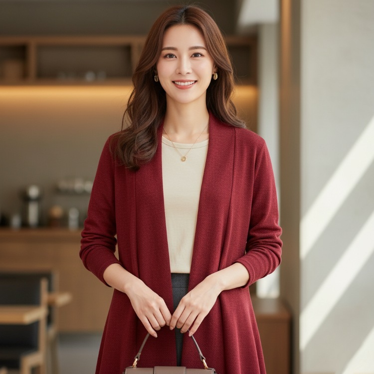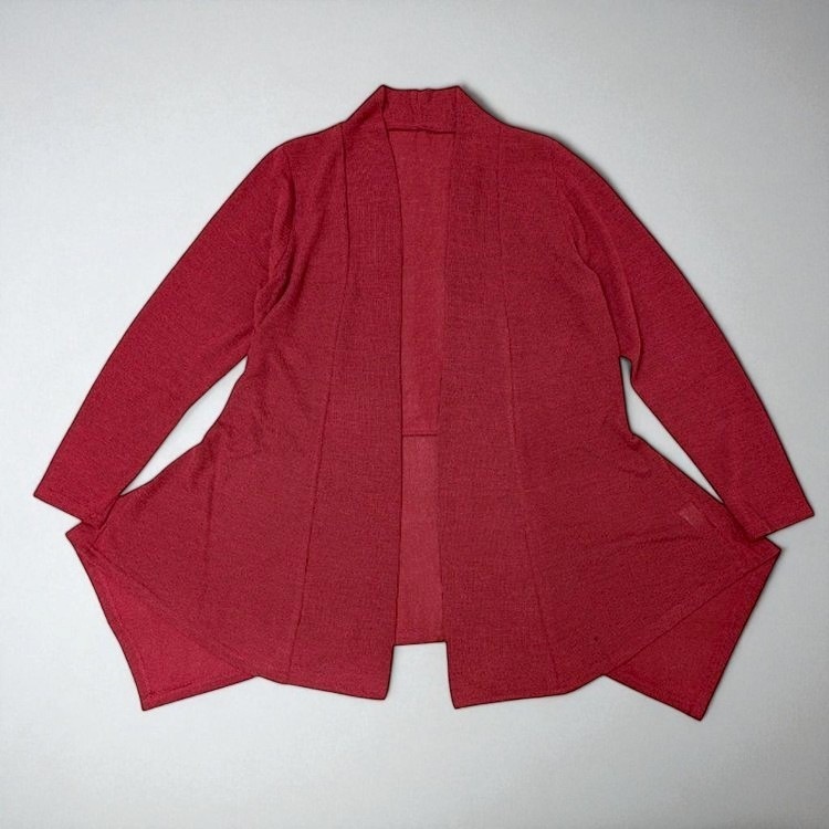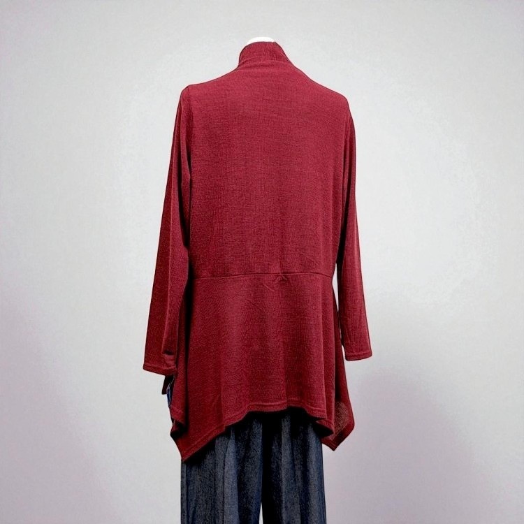 【秋物新作】ドレープヘム ロングカーディガン ニットソー M~L・ワイン 550401