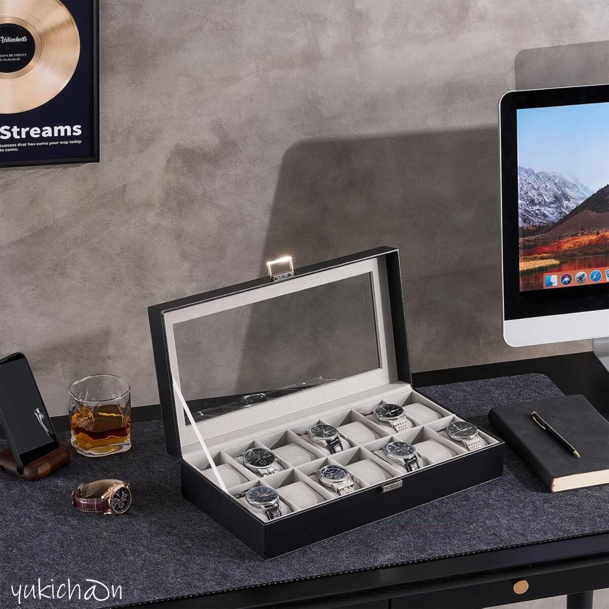 腕時計ケース ウオッチボックス 男女兼用 収納ボックス 14本 ブラック PU製 アクセサリーケース アクセサリー 収納 ディスプレイ 小物整理