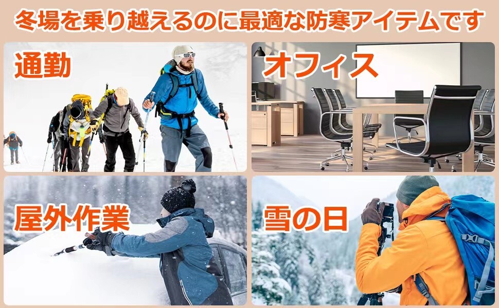 【前後9箇所発熱 ヒーターベスト】前に2つ、後ろに7つのヒーターが内蔵され、9箇所を効率よく温まり、寒い季節でも暖かく過ごす電熱ベスト。着る暖房のように冷えやすい体をじんわりと温めてくれて、冬の通勤通学、自転車/バイク運転、釣り、スポーツ観戦、スキー、登山、屋外作業など、普段使いから、アウトドア活動やお仕事まで幅広く活躍し、寒さが厳しい冬場を乗り越えるのに最適な防寒アイテムです。