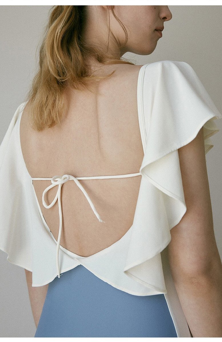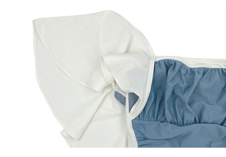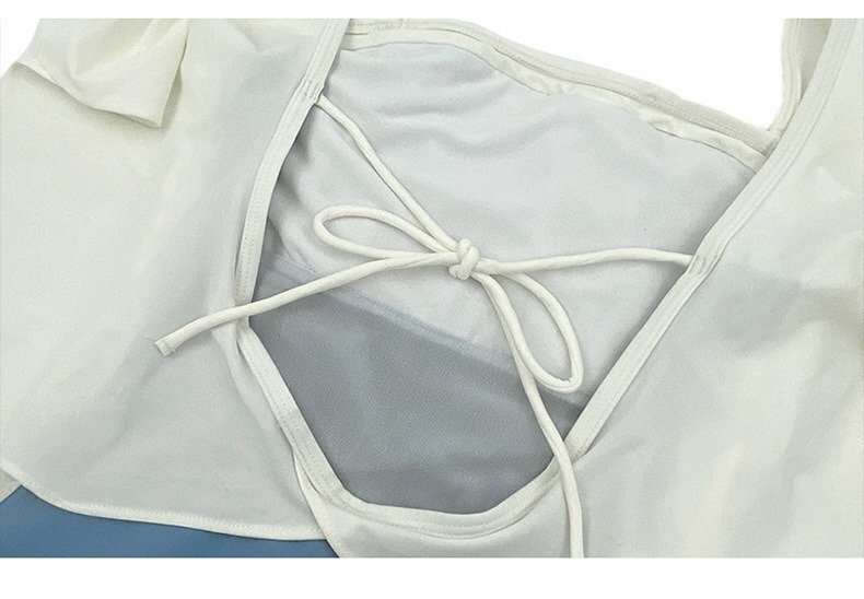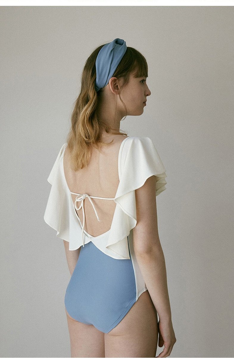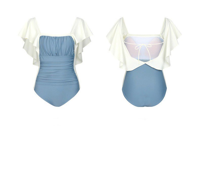 最新作 フリル袖ビキニ 水着 フリル 20代 30代 モノトーン 一体型ワンピース 露出控えめ 水泳 温泉 プール ブルー L
