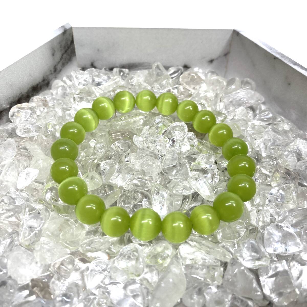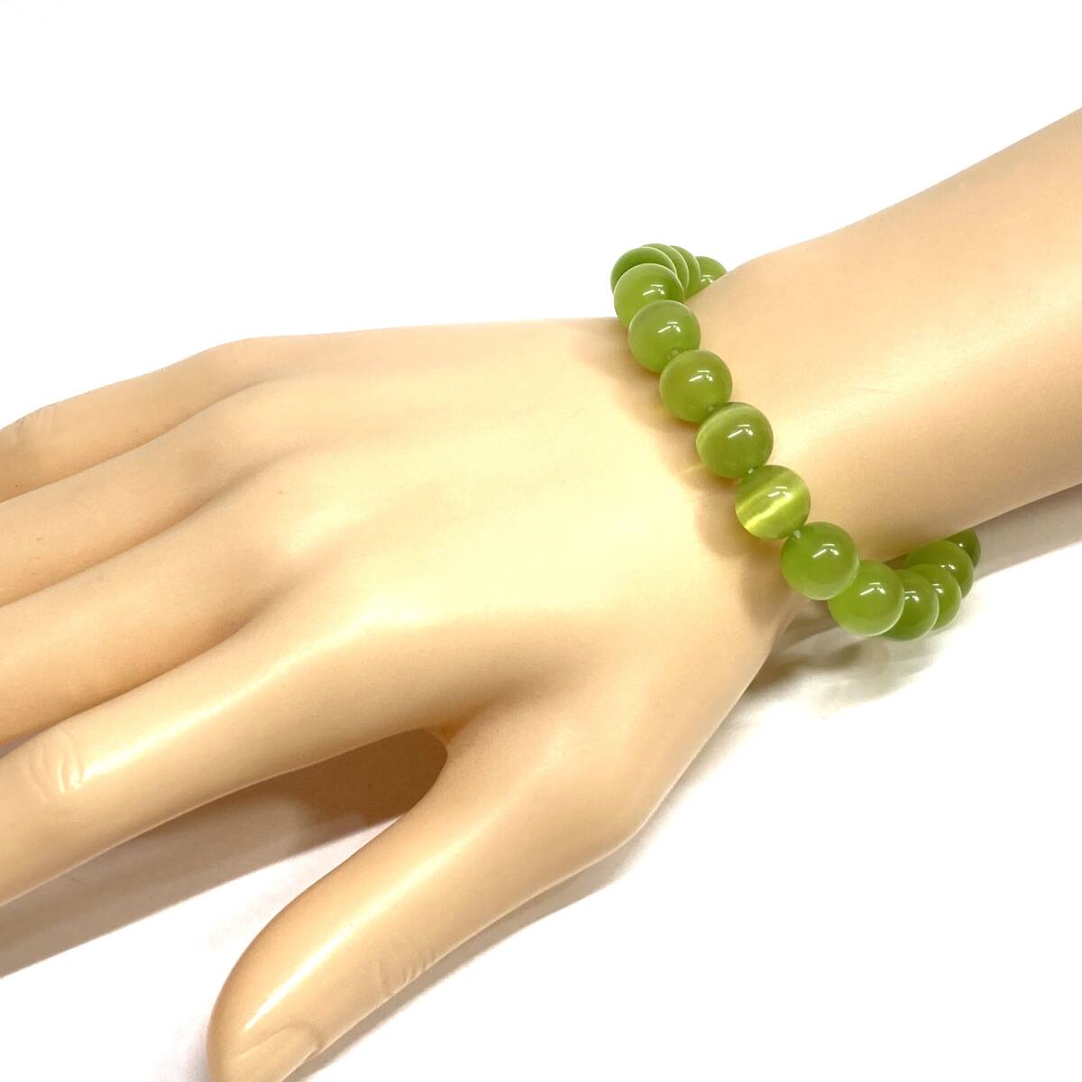 キャッツアイ(ライムグリーン) パワーストーン ブレスレット 10mm (シンプル) 数珠ブレス メンズ・レディース 男性 女性 幸運 開運 浄化
