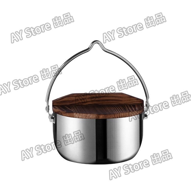 アウトドア 吊り鍋 深型鍋 吊り下げ 焼き鍋 鏡面2L 料理鍋 304ステンレス製 961g 厚さ2mm 高さ10cm 直径18cm キャンプ 登山 蓋付き bhw0282