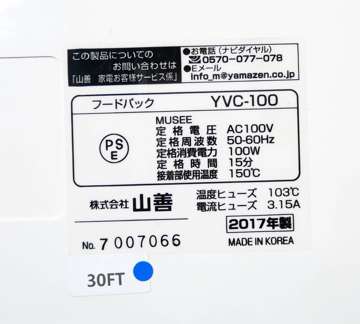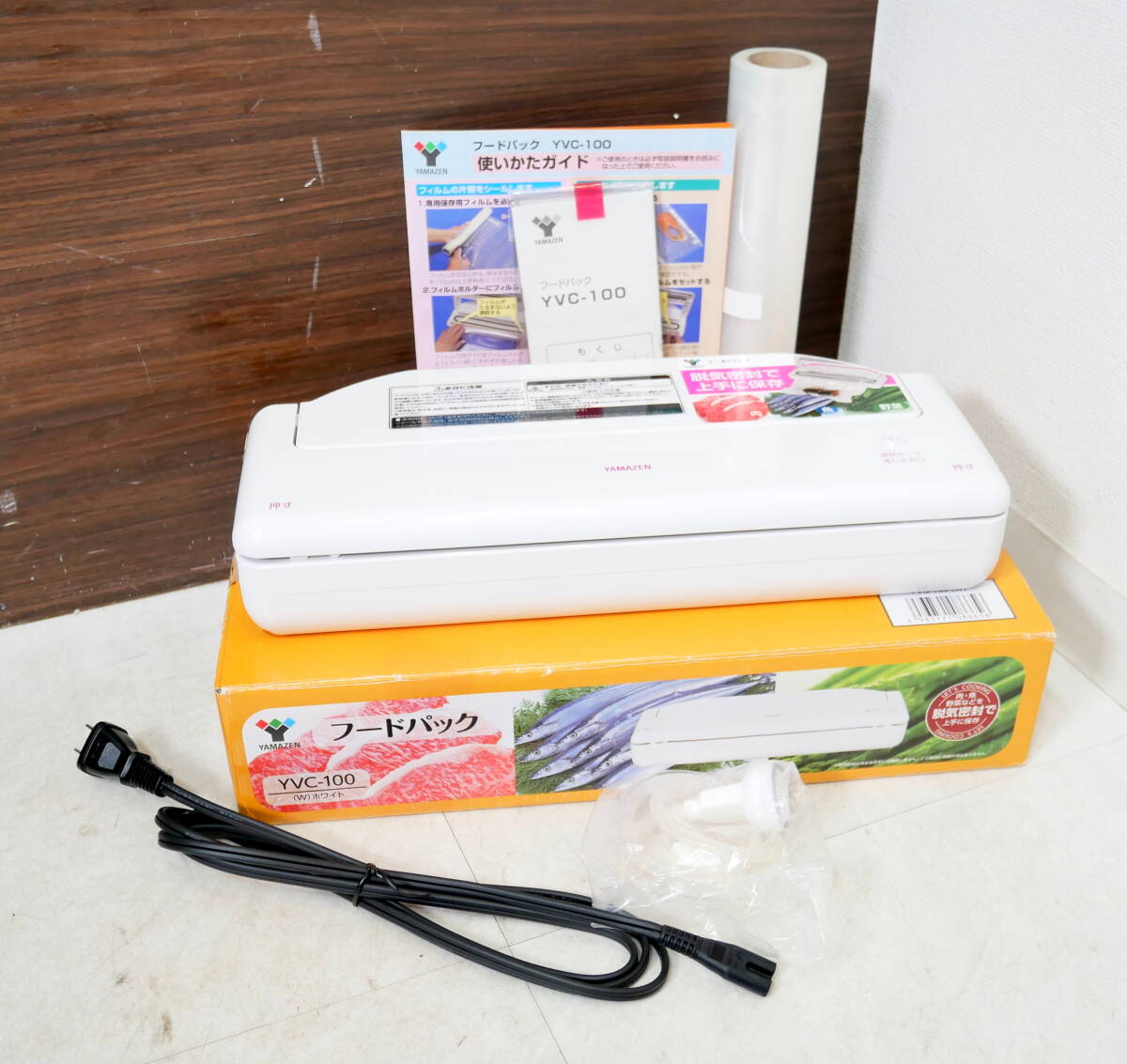 | ▲(R709-H236) 現状品 美品 YAMAZEN 山善 YVC-100 フードパック 真空パック器 保存用フィルム付き 2017年製 外箱付き 通電OK | ||