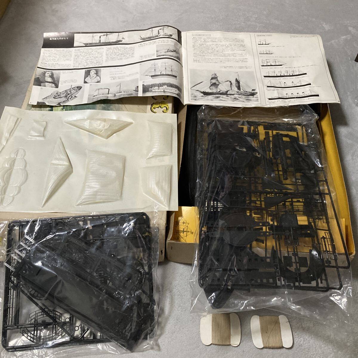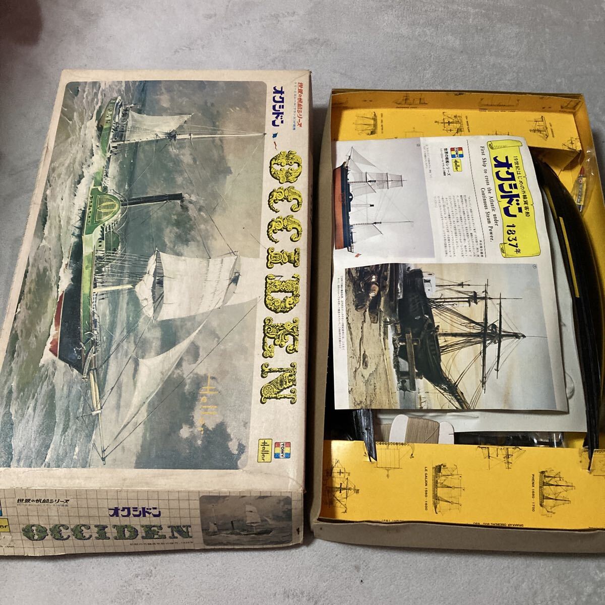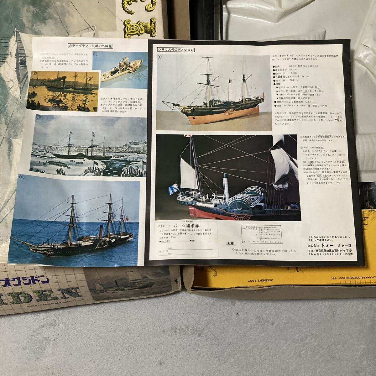 閲覧ありがとうございます。トミーエレール 世界の帆船シリーズ オクシドンです。かなり古い製品で、外箱のステイプルが外れています。部品は目視で確認した限り79番の左舷手摺りが破損しています。あと、帆に変色と一カ所破れがあります。他にも脱落などあるかも知れません。よってジャンク品扱いとして3Nでお願い致します。ダンボールで梱包して120サイズで発送予定です。