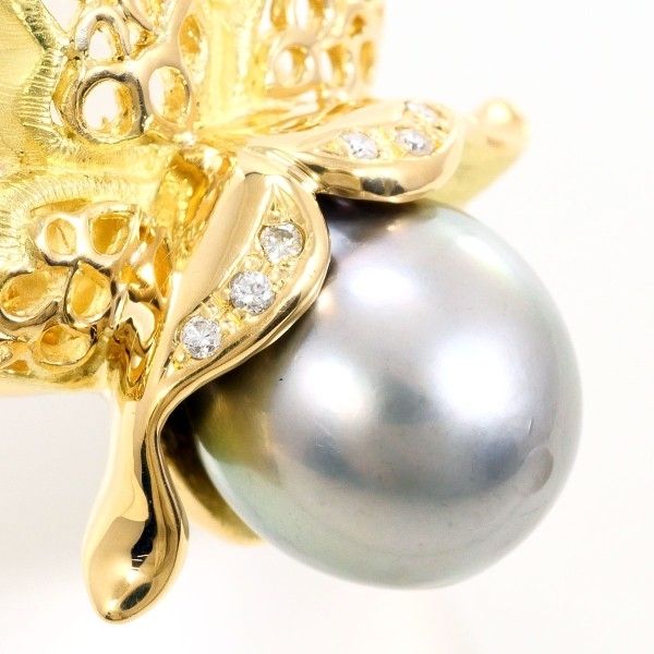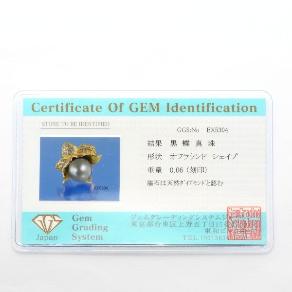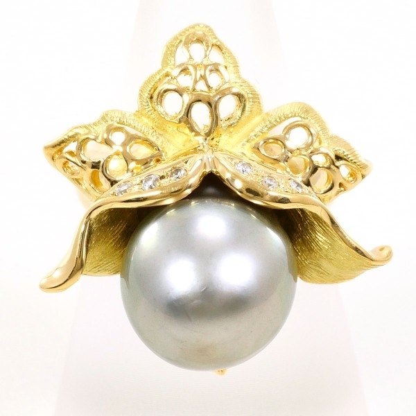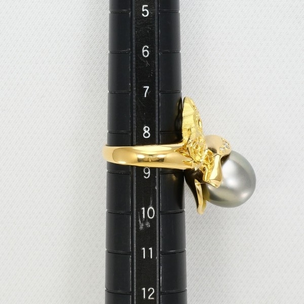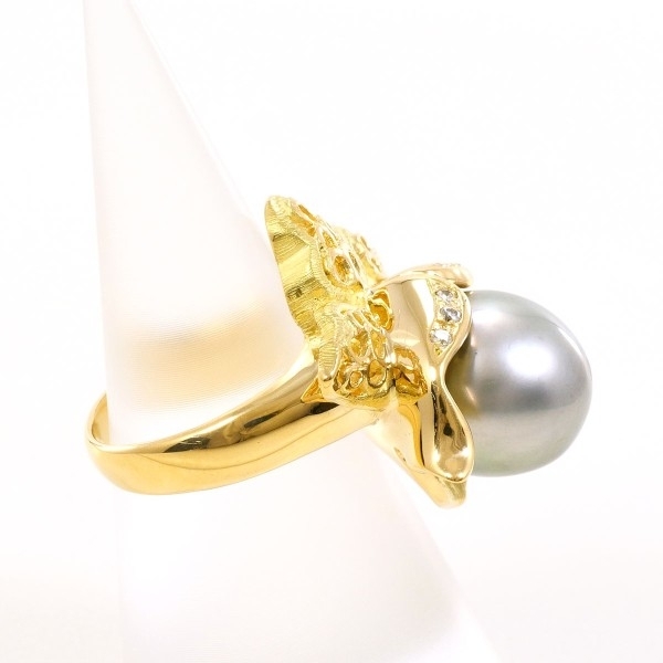 K18YG リング 指輪 8.5号 黒蝶真珠 約12mm ダイヤ 0.06 カード鑑別書 総重量約13.4g 中古 美品 送料無料 | |