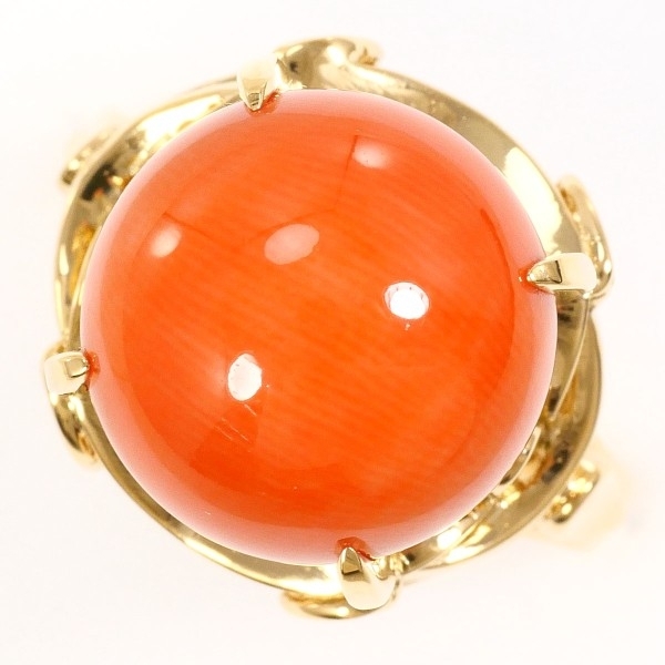 K18YG リング 指輪 14号 サンゴ カード鑑別書 総重量約7.6g 中古 美品 送料無料 | |