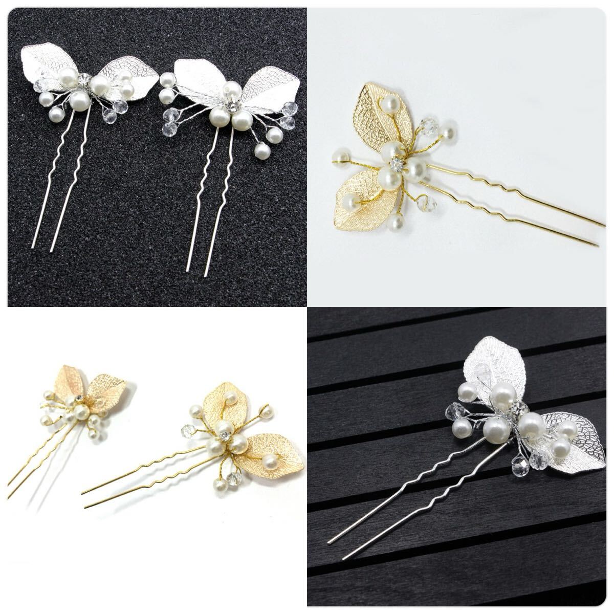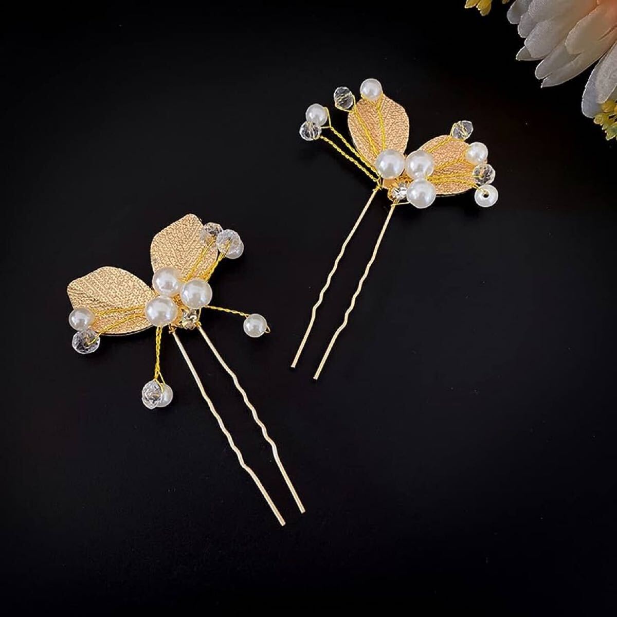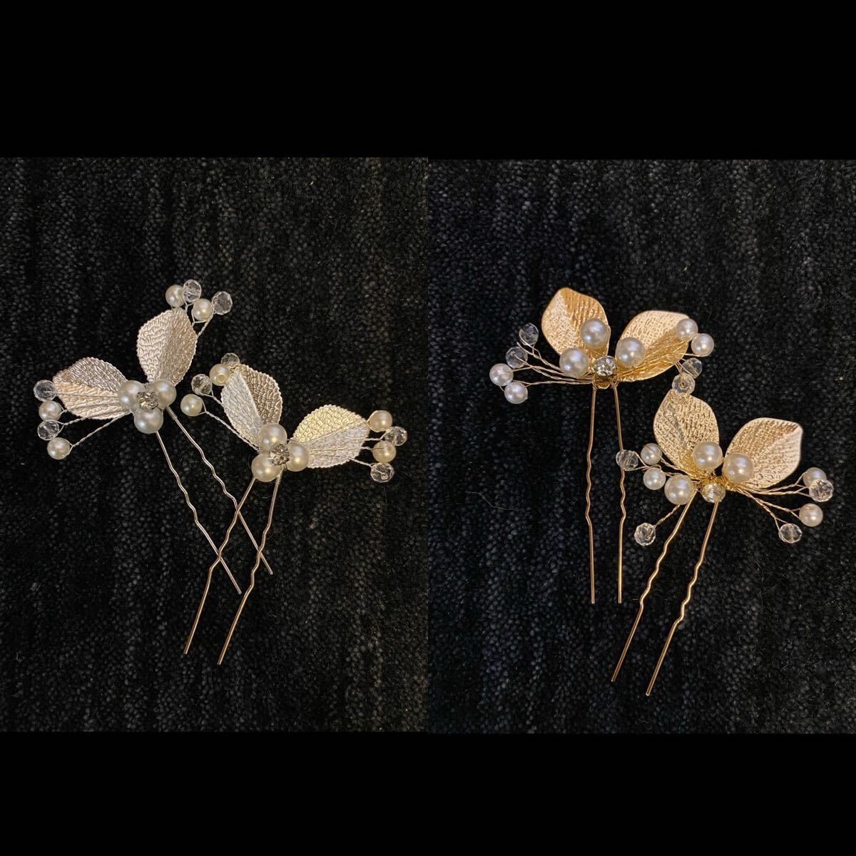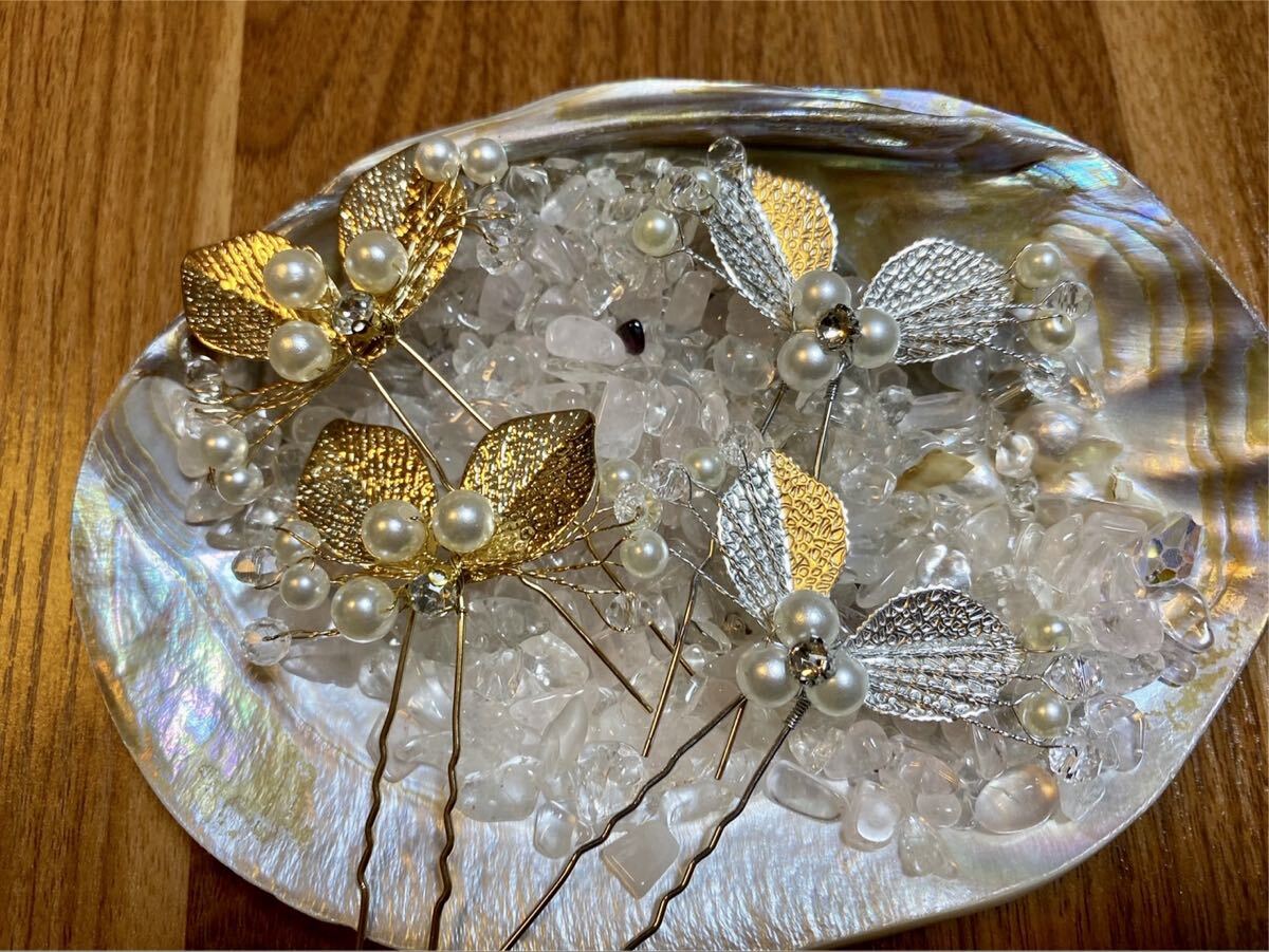 パールのお花にリーフがキラキラしていて豪華さもあるヘアピン入荷しました♪