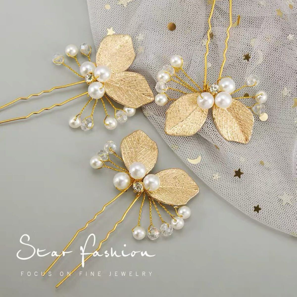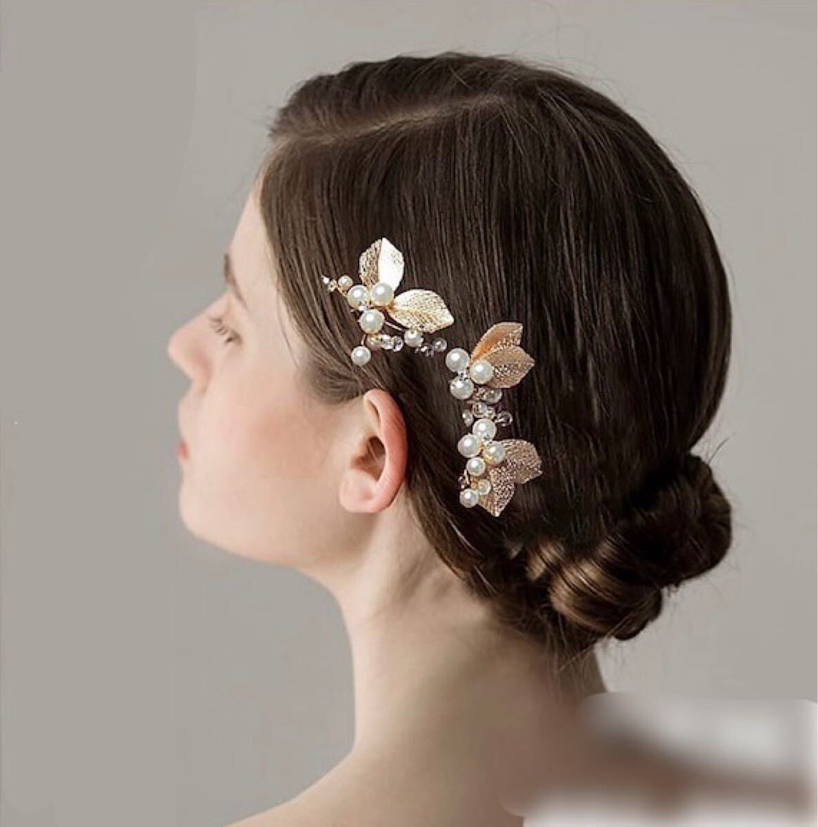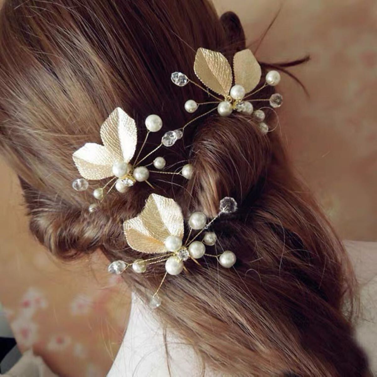 パールのお花にリーフがキラキラしていて豪華さもあるヘアピン入荷しました♪