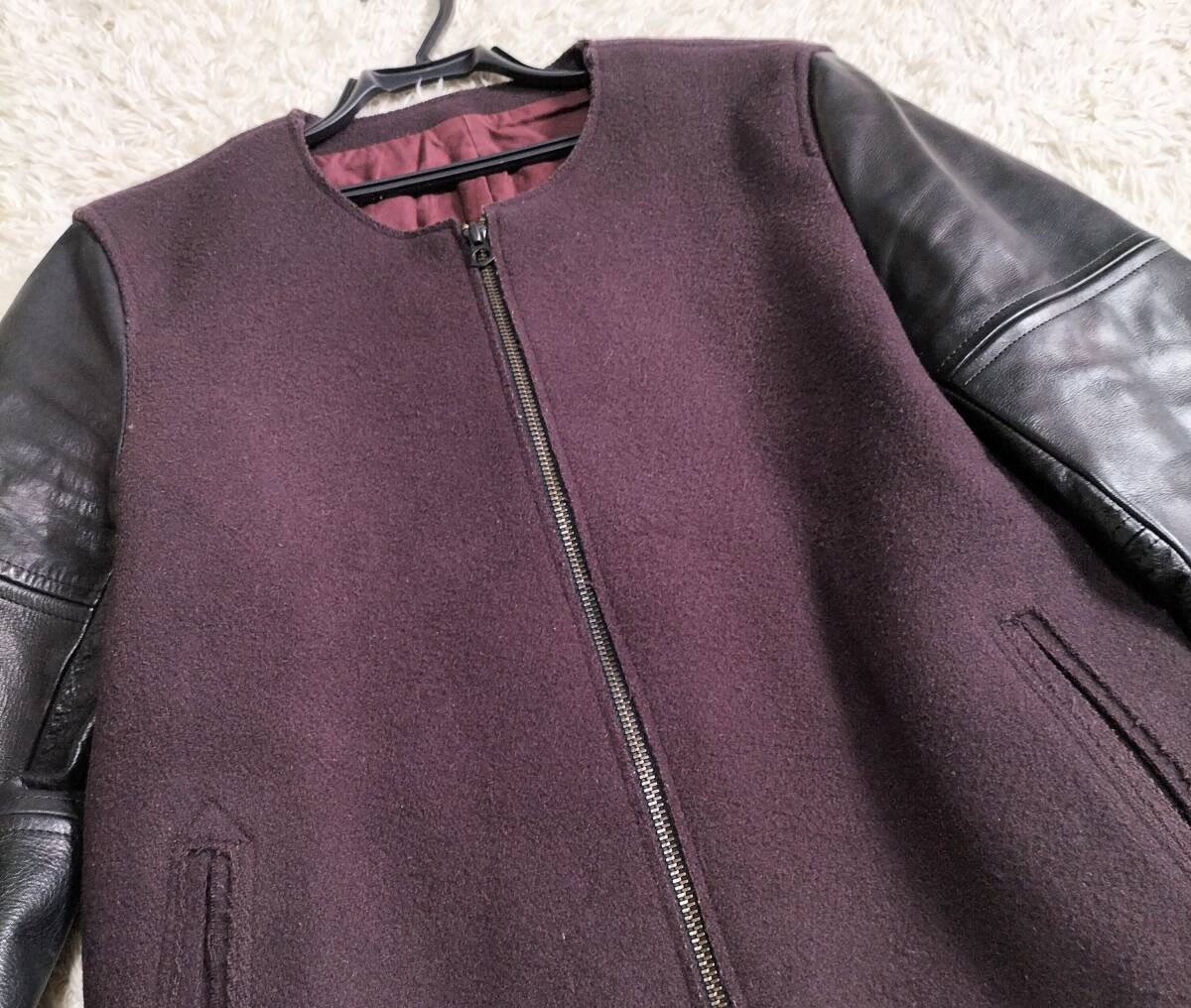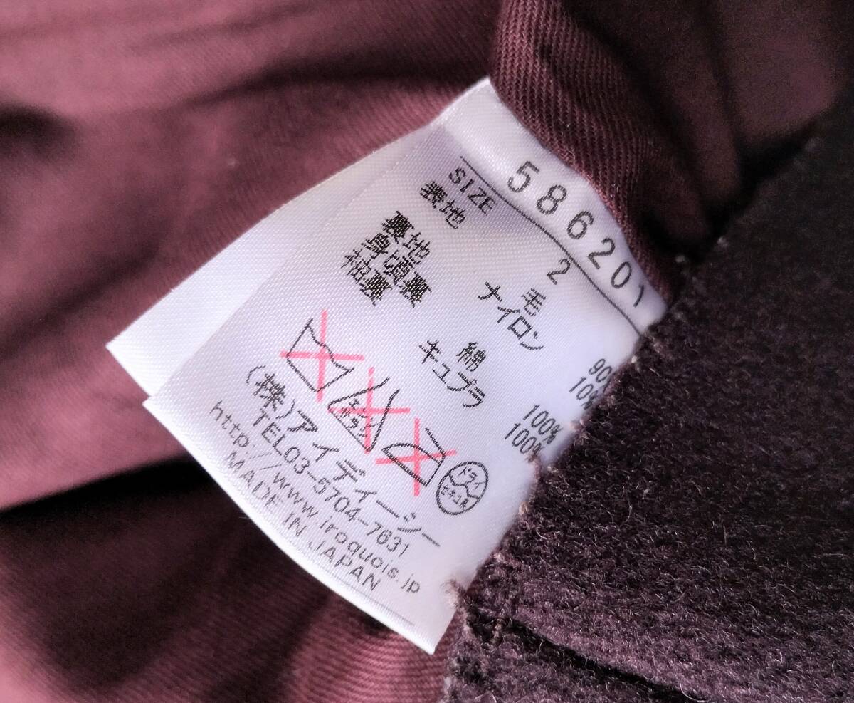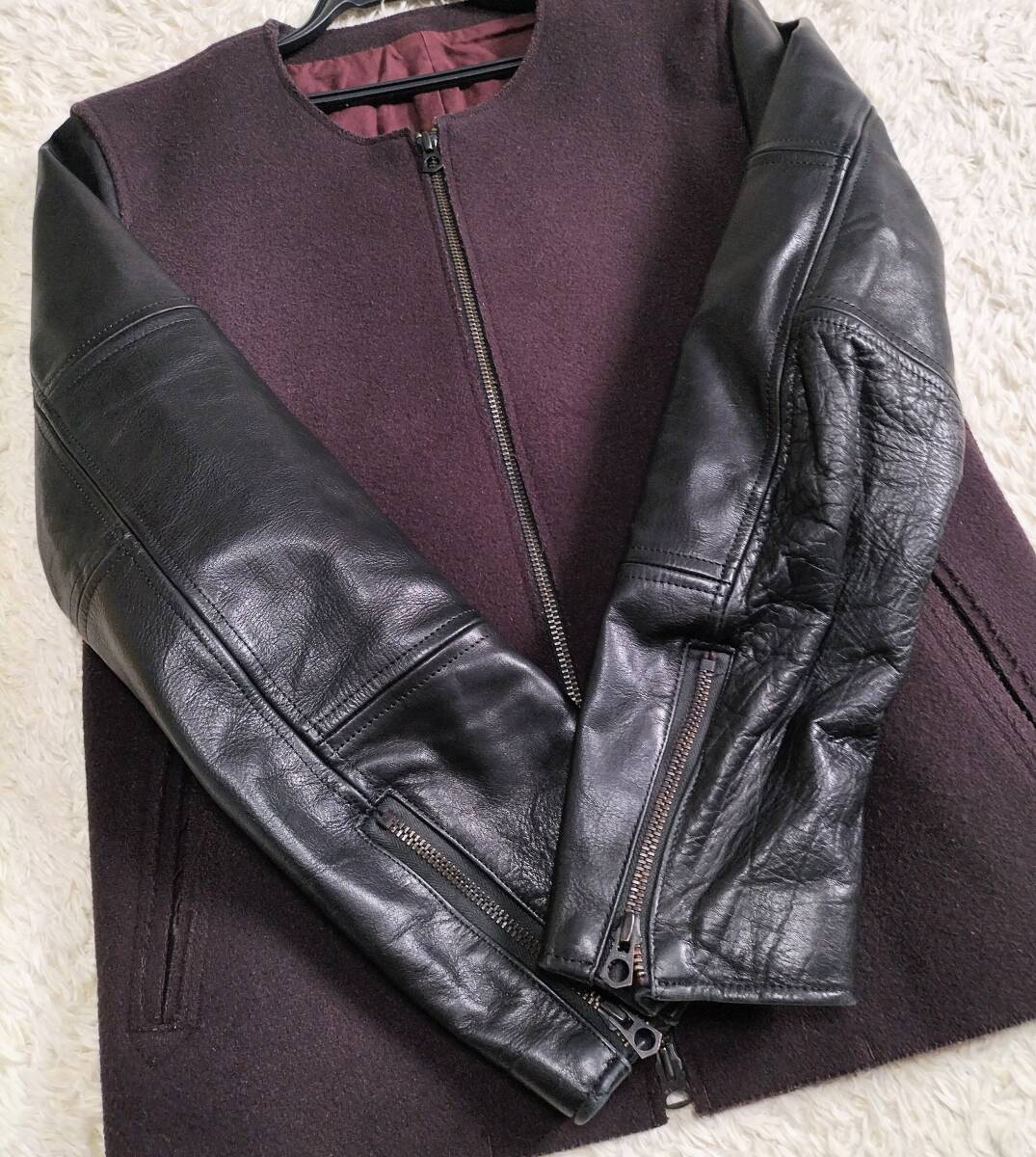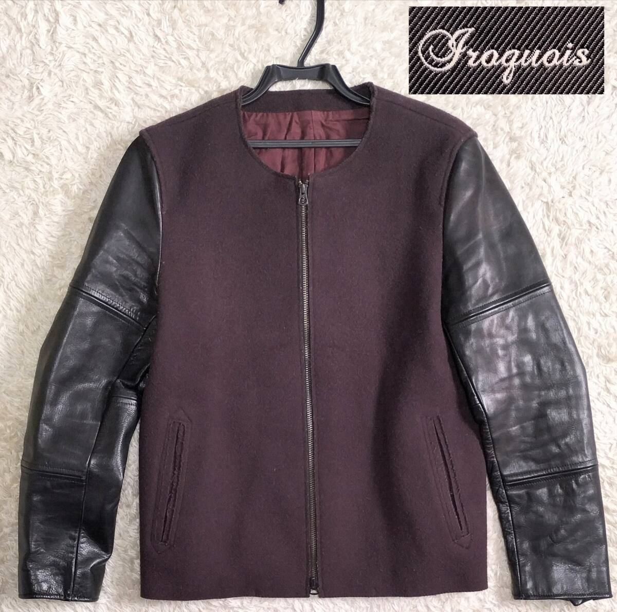 【袖牛革(鳴き革)★】サイズ2 Iroquois レザー ノーカラー スタジャン●断ち切り二重織メルトン☆イロコイ (9ハ)