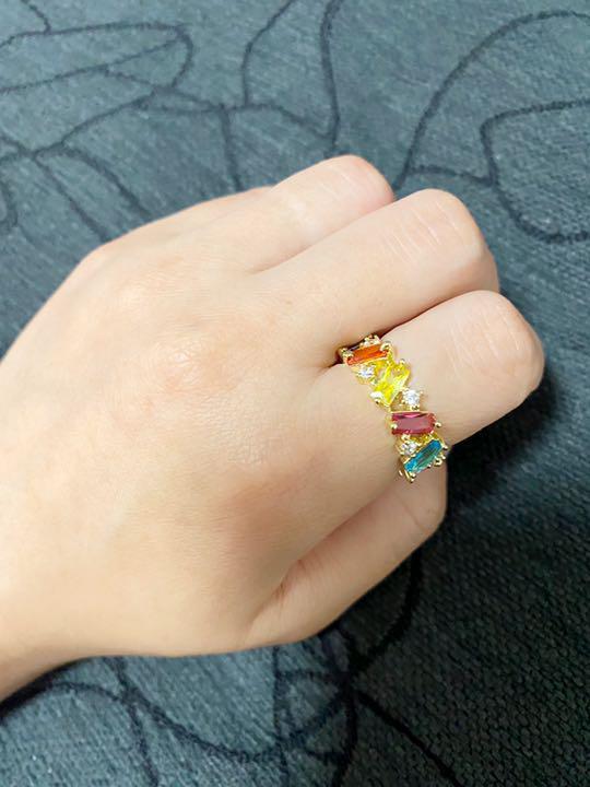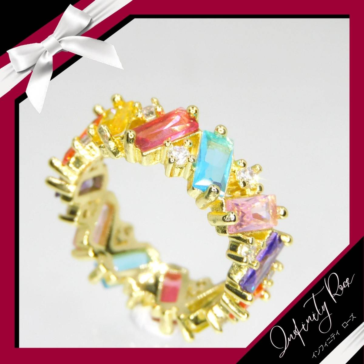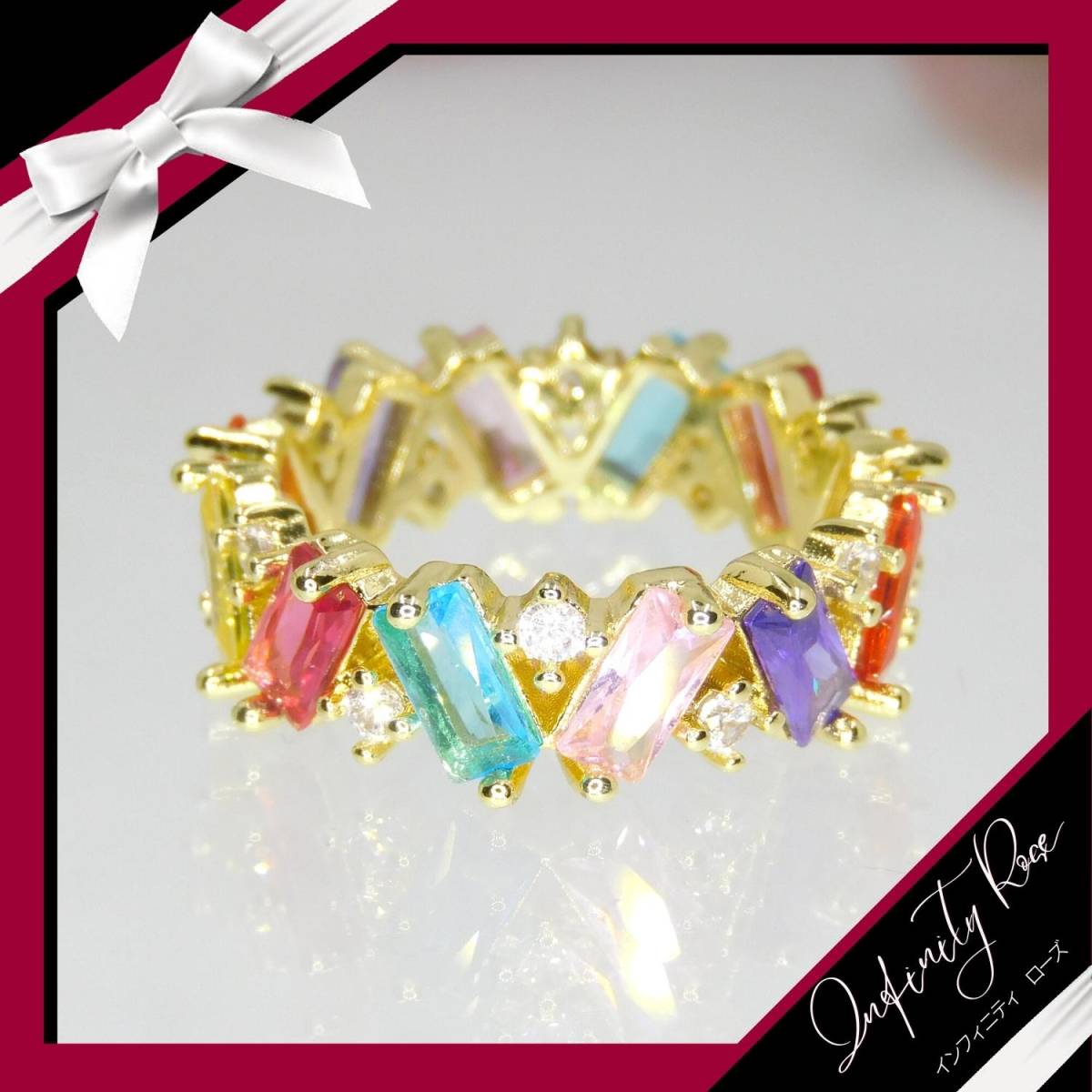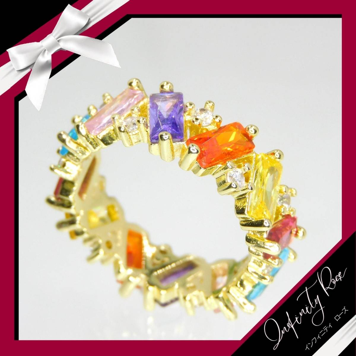 (1220)15号 ゴールドスワロ高級スクエアカラフルリング 高価爪留め 指輪