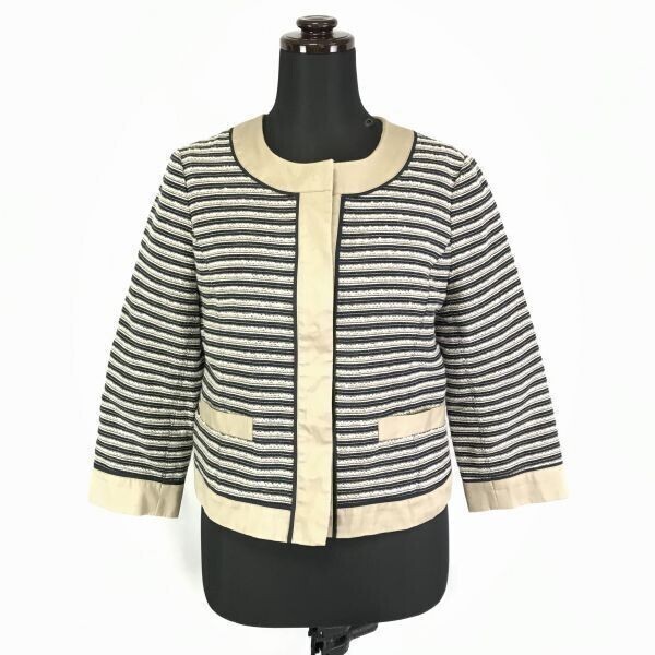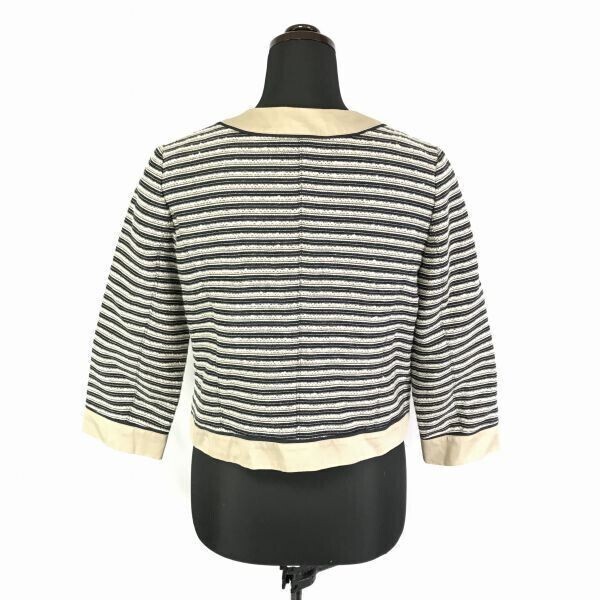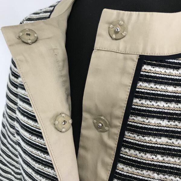 ◆商品説明◆ | ◆サイズ:1/S ◆着丈(背面の襟ぐりから裾まで)- 約42cm ◆身幅(右脇下部分から左脇下まで)-約45cm ◆肩幅(背面の右肩付け根から左肩付け根まで)-約38cm ◆袖丈(肩付け根部分から袖口まで)-約45cm ※採寸の多少の誤差はご了承ください 他にも人気ブランドの商品を多数出品しております。希望のサイズ・デザイン等がないかどうか★ぜひチェックしてみてください★ ◆お色:ベージュ×ネイビー ◆素材:(画像4参照) デザイン性に優れた上質な一着です★ | |||||||||||||||||||