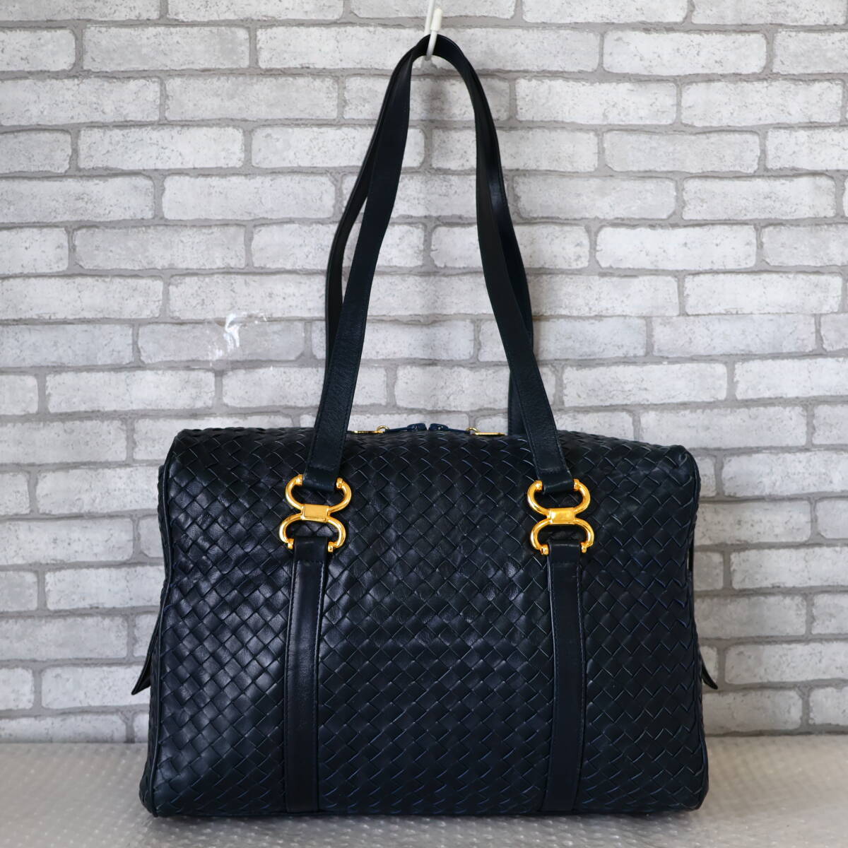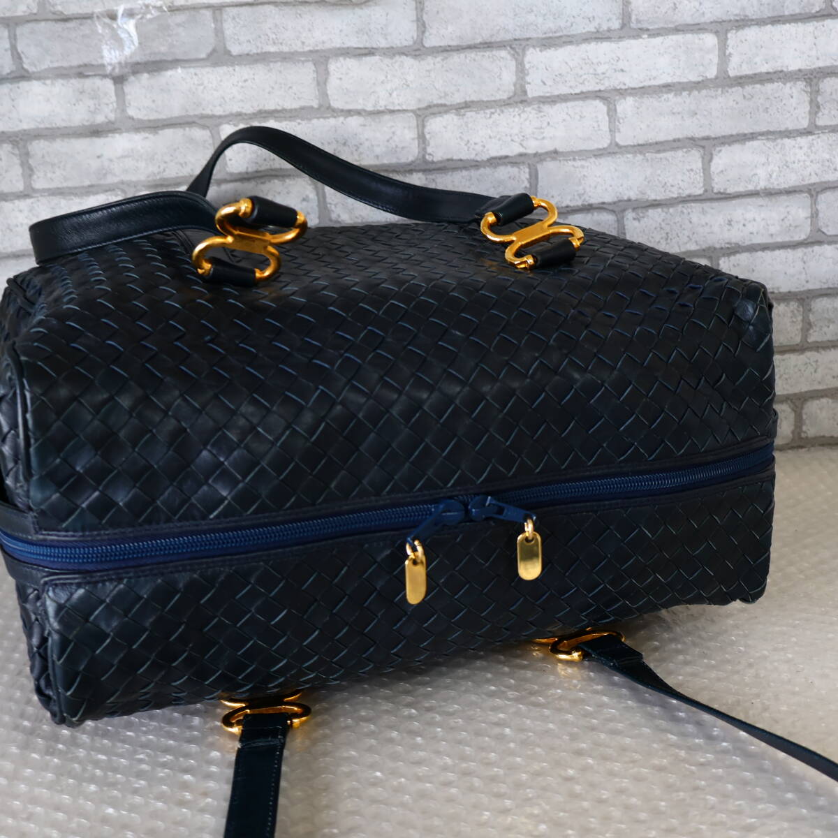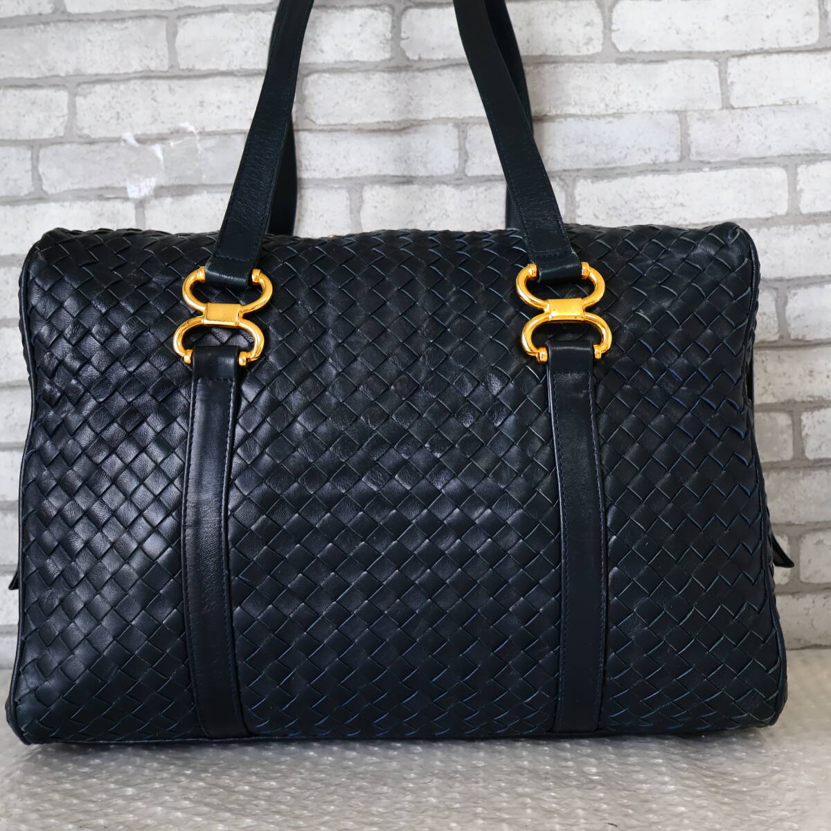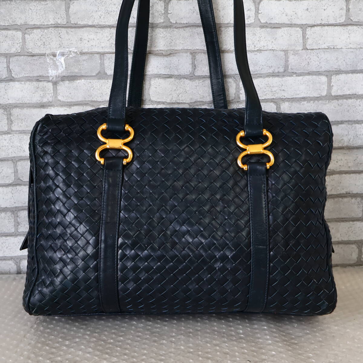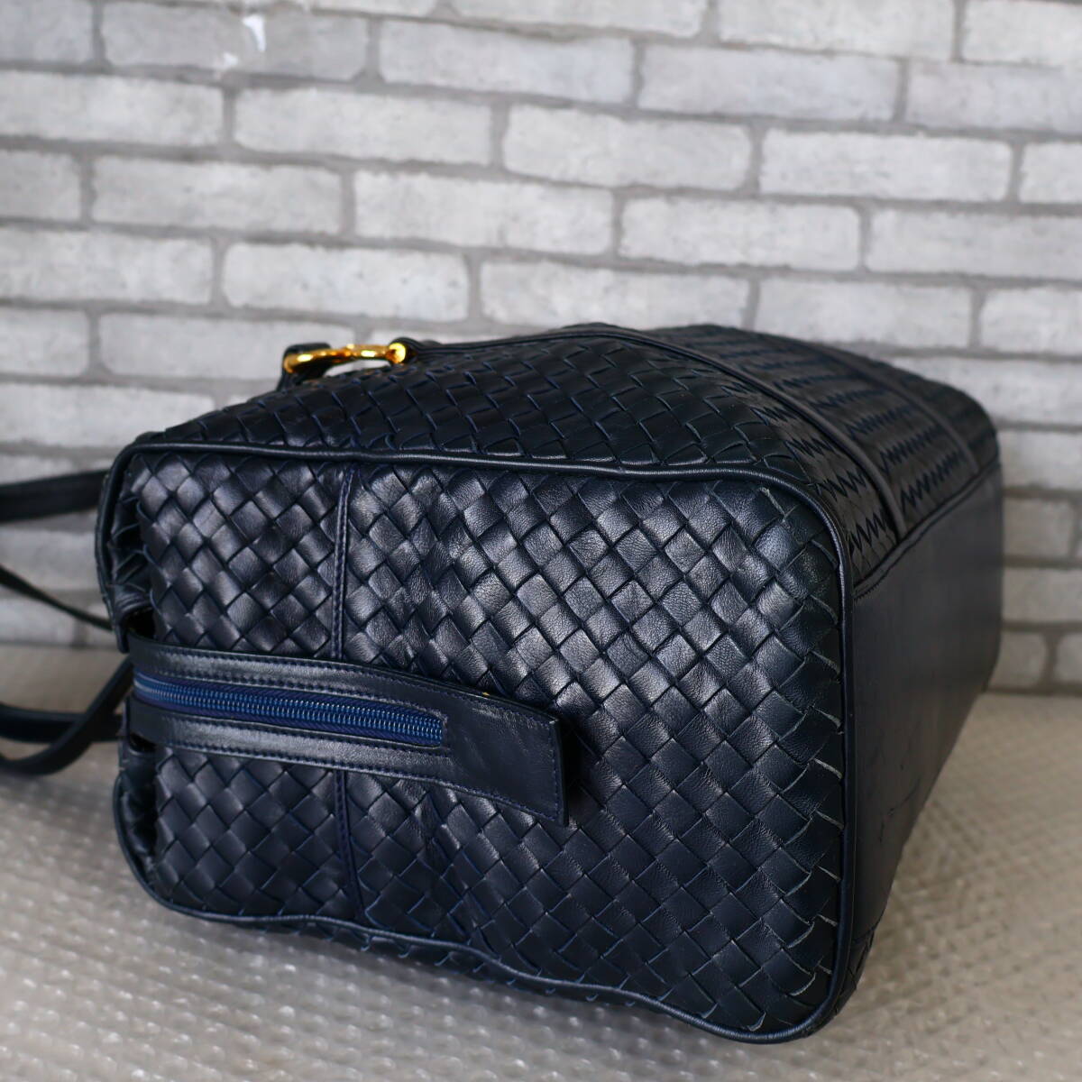 *イタリア製*Adrina*メッシュレザー*ボストンバッグ*ネイビー*