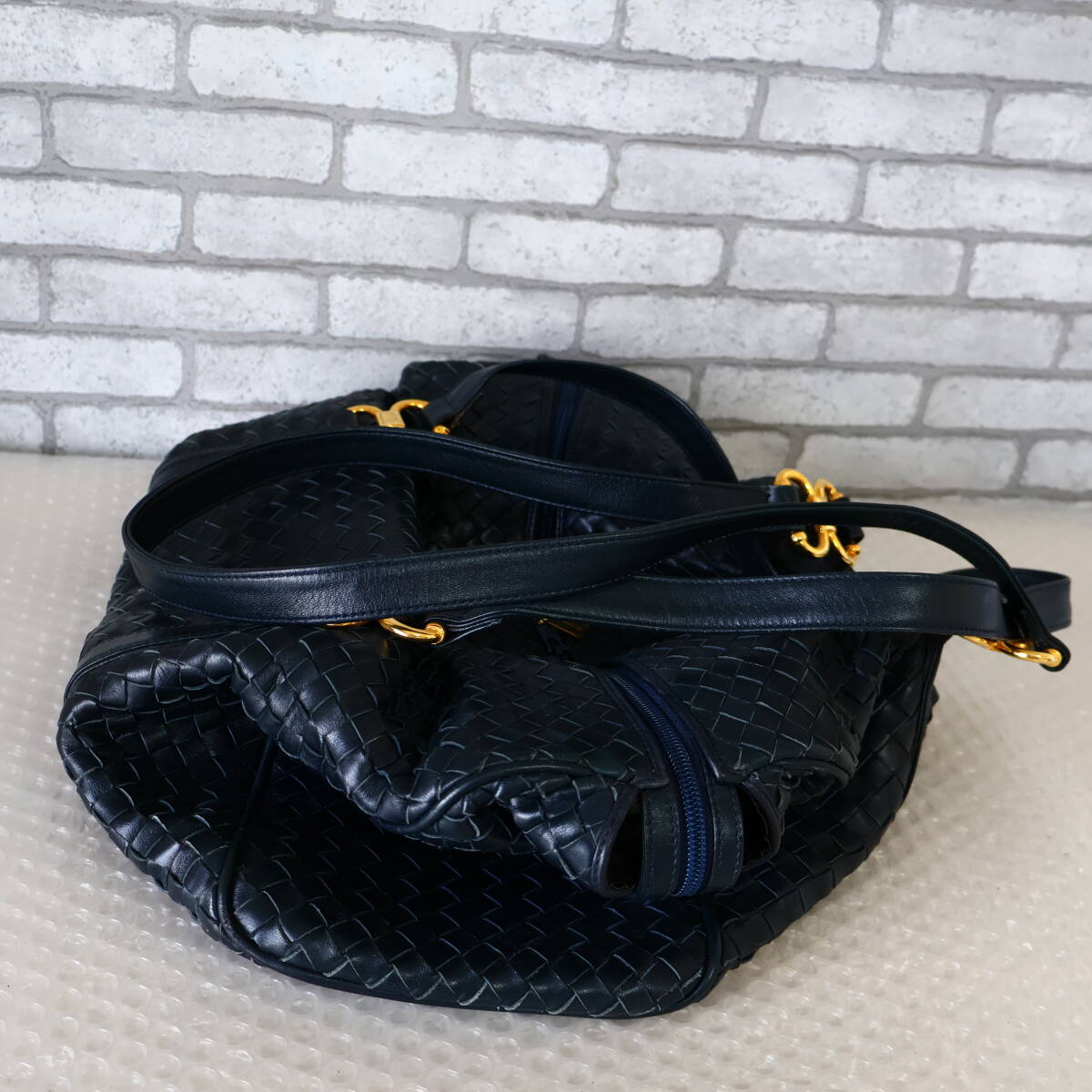 ・保管時の畳み皺や型崩れ、やや傷やライニングの劣化による剥離があります