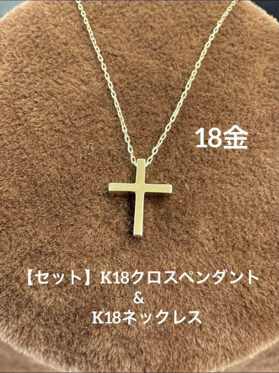 ★【セット】K18クロスペンダントとK18ネックレス【約40センチ】
