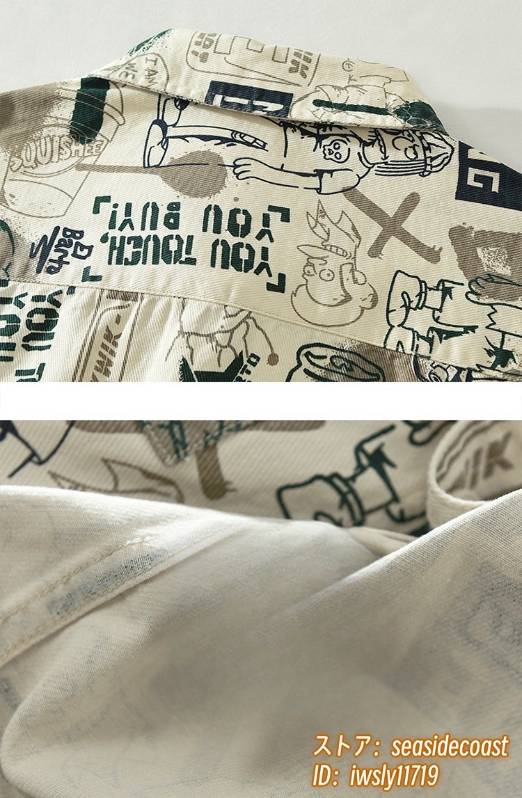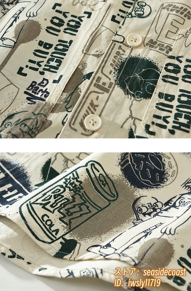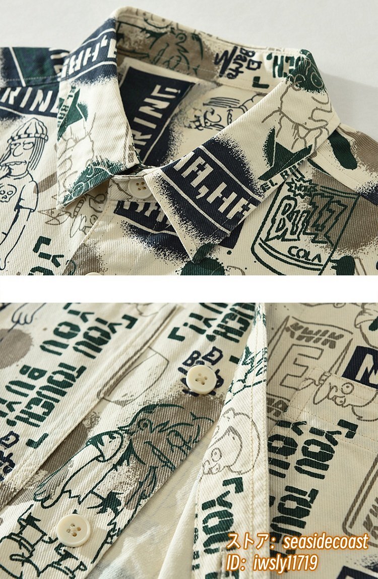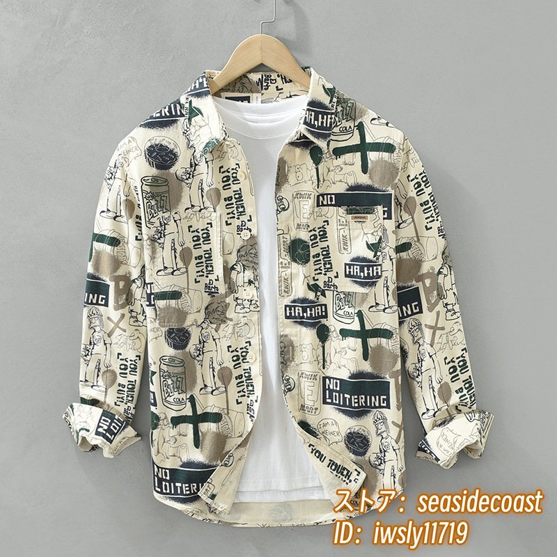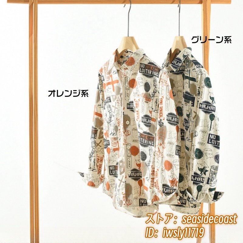春新品 メンズシャツ 長袖シャツ 総柄シャツ ワイシャツ 落書き ヴィンテージ お洒落 カジュアル 柔らか コットン 心地良し グリーン系 3XL