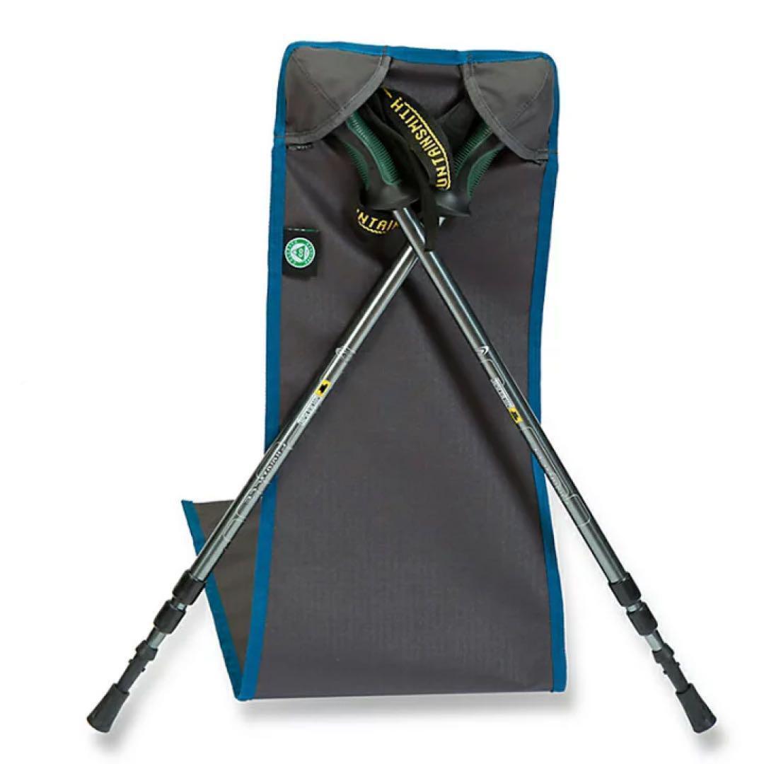 トレッキングポールを2本使用して自立する折り畳みチェアー。