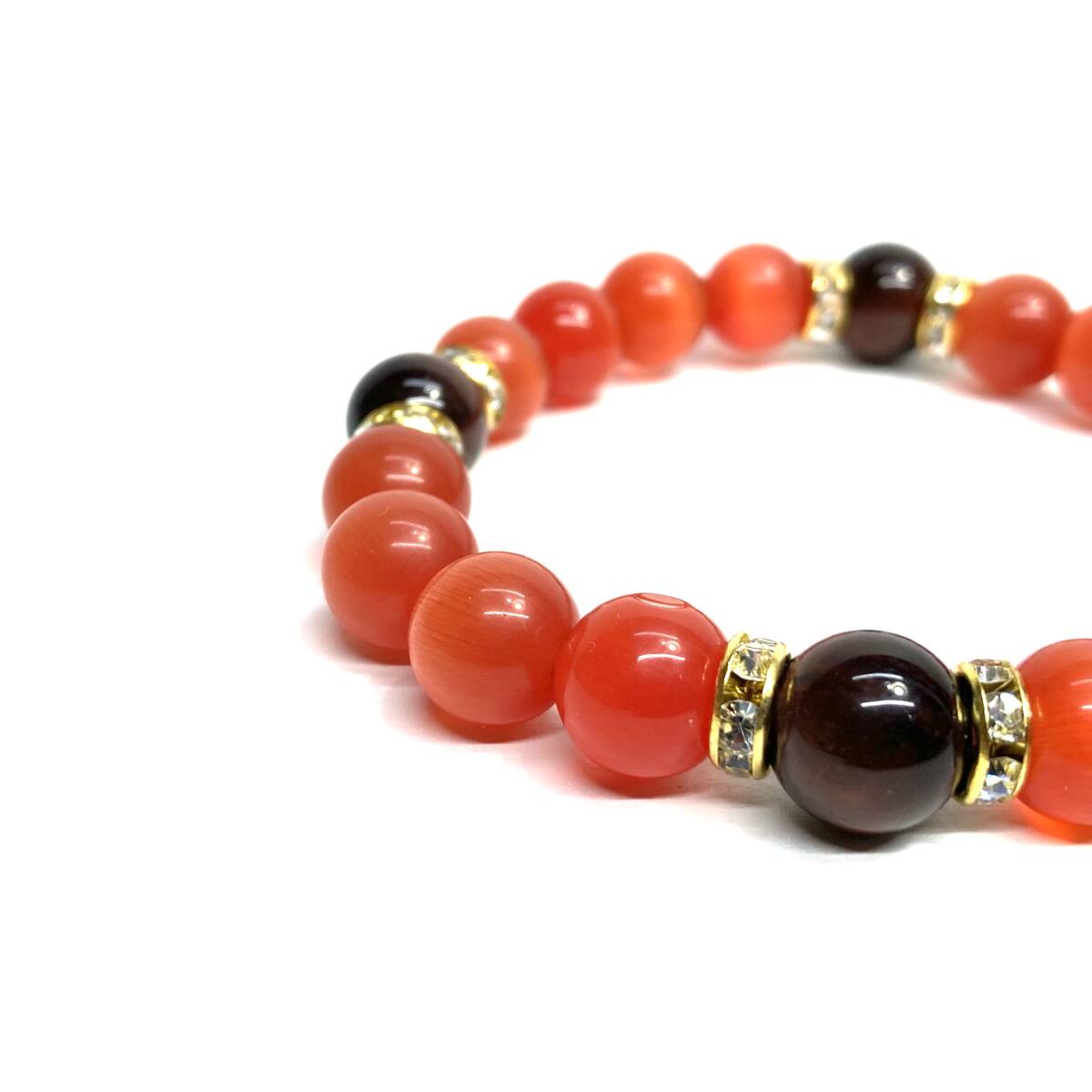キャッツアイ(レッド)×レッドタイガーアイ パワーストーン ブレスレット (ゴールド) 10mm 数珠ブレス メンズ・レディース 男性 女性