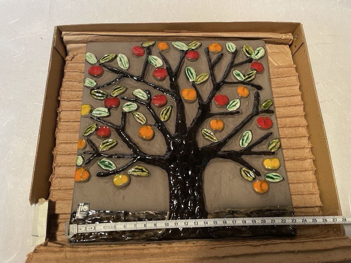 りんごの木のスエーデン ハンドメイド陶板です。23x23x2cm。随分前に購入しましたが、結局使いませんでした。箱にはいったままでしたので、とてもきれいです。箱は古くなってます。