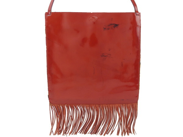 コンディション | 全体の状態詳細:裏面に目立つ汚れがございますが、その他の状態は良くまだまだ十分ご使用いただけます。外側:持ち手(表面右側接続部分の生地に接着剤の変色、付け根部分ヒビ)、エナメルレザー部分(数箇所に黒っぽい汚れ、スレ)あり。その他、中古品のため 目立たない 傷 汚れ などの一般的使用感があります。 |