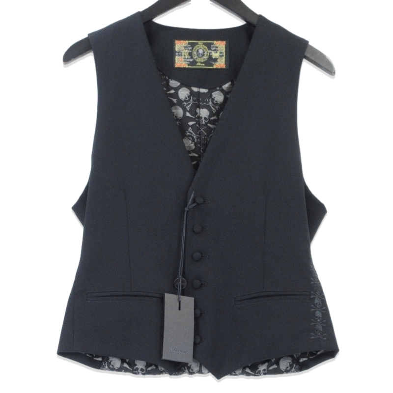 商品説明 | Roenのベスト。丁寧に仕立てられた一着で、永くご愛用いただけるデザインです。品質表示タグについていた替えのボタンが取れてしまったため、袋に入れてフロントポケット内に入れております。 |