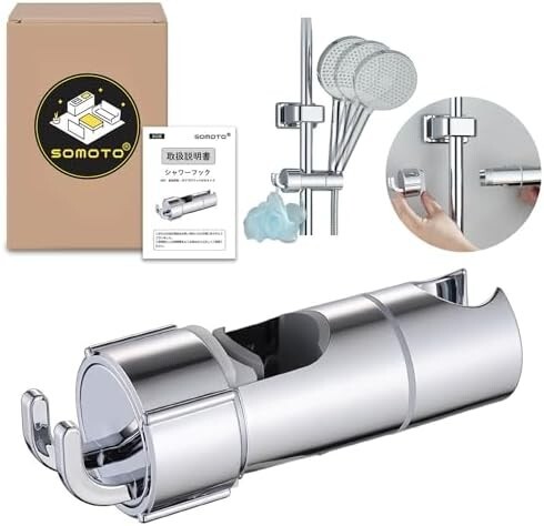 SOMOTO シャワーフック φ16~25mmのスライドバーに対応 吊り下げフック付 スライド シャワー フック 取り外し不要 高さ 角度調整 360°自由回転 修理交換・後付け用 シャワーヘッドホルダー シャワーホルダー シャワーヘッド フック 日本語説明書付き シルバー