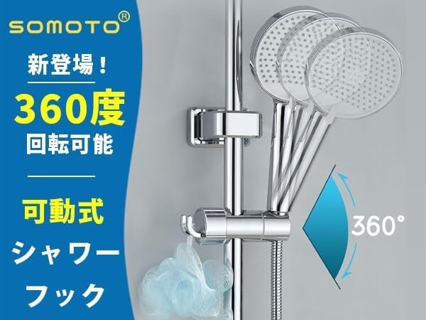 ☆新品☆SOMOTO シャワーフック φ16~25mmのスライドバーに対応 吊り下げフック付 スライド シャワー フック 取り外し