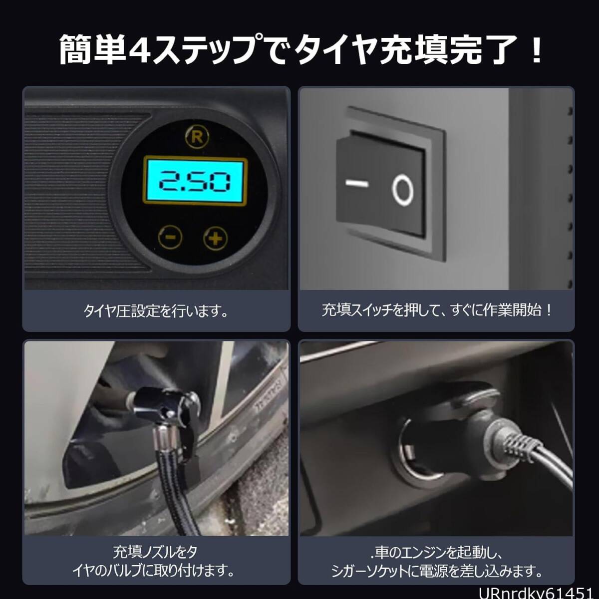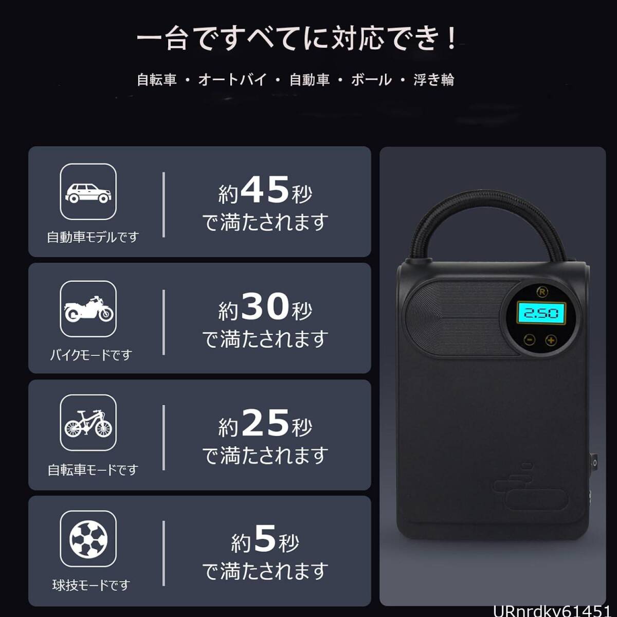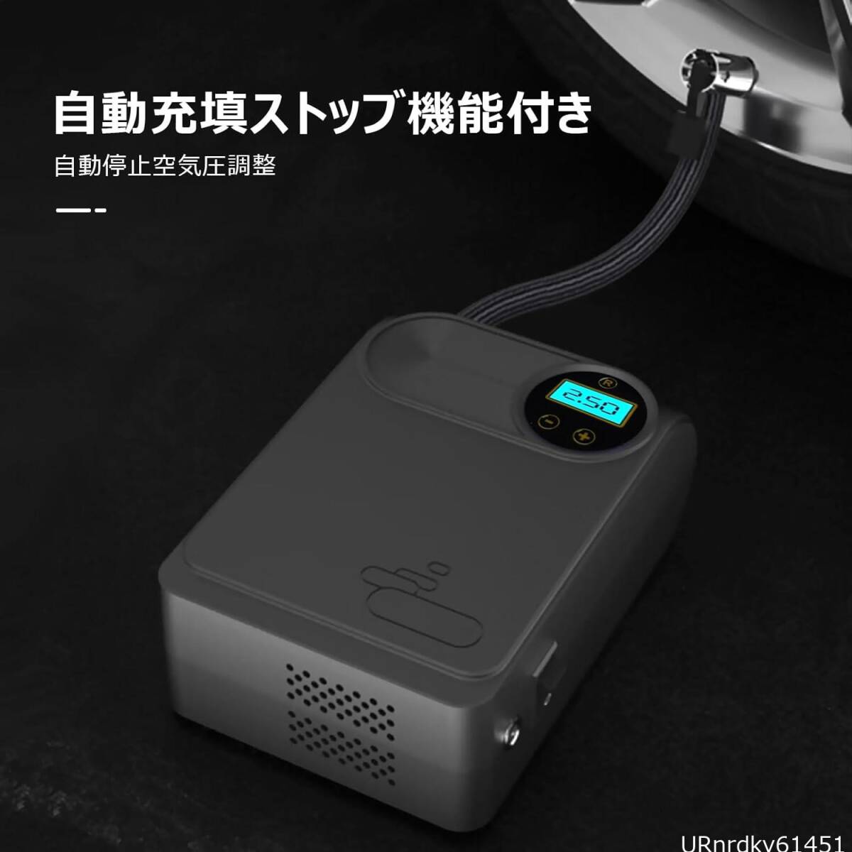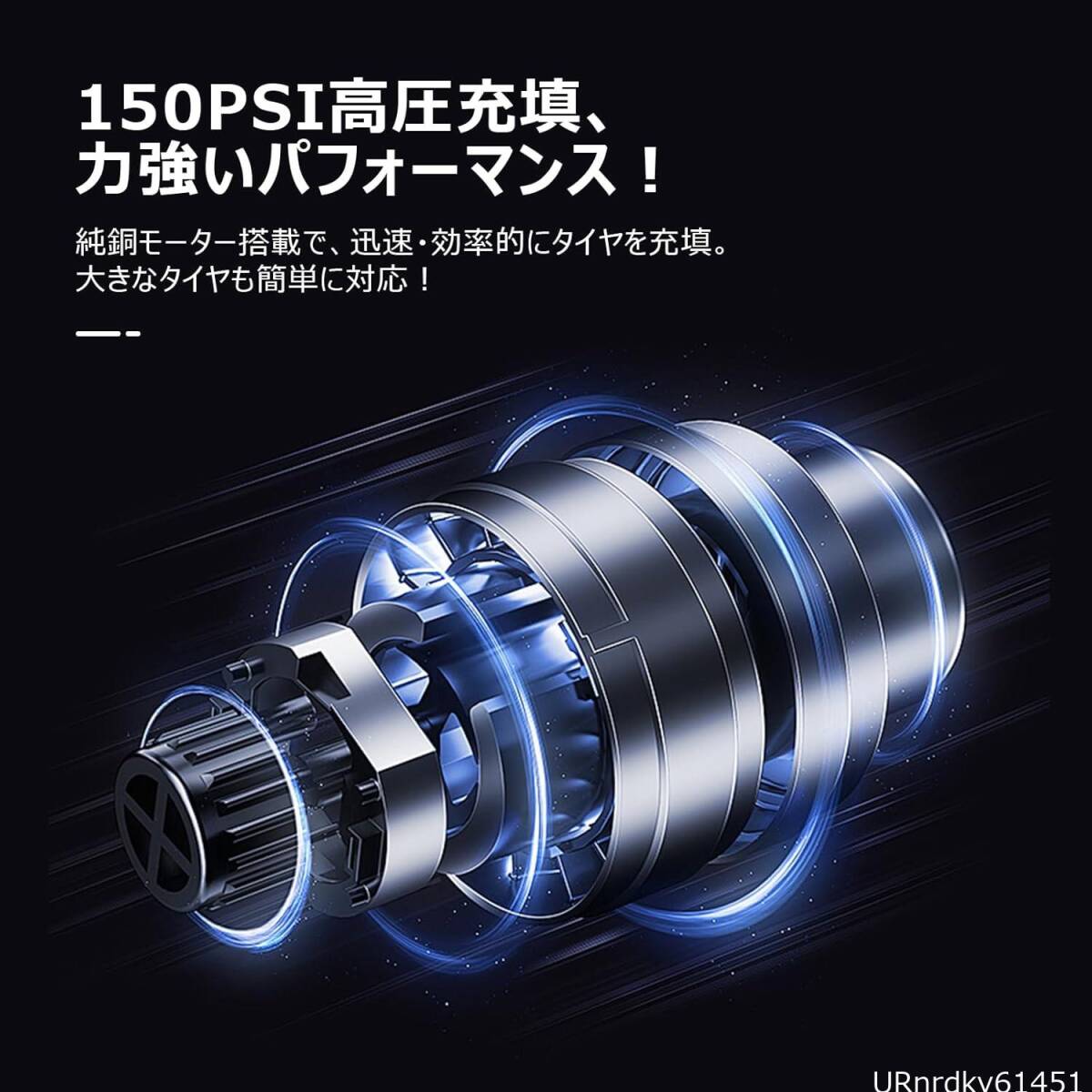電動空気入れ タイヤ 空気入れ エアーポンプ 車/自転車用 [150PSI 自動停止] 高圧充電式 エアコンプレッサー 付属6ノズ