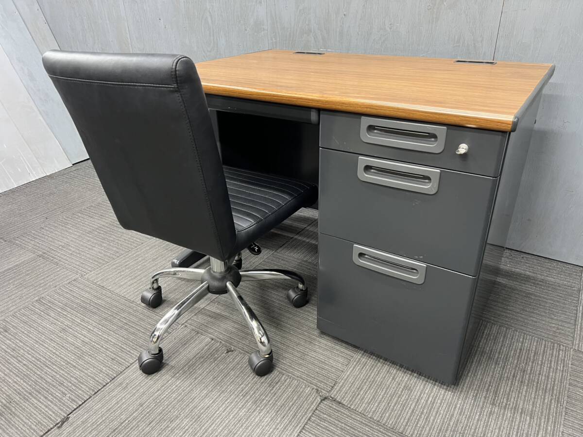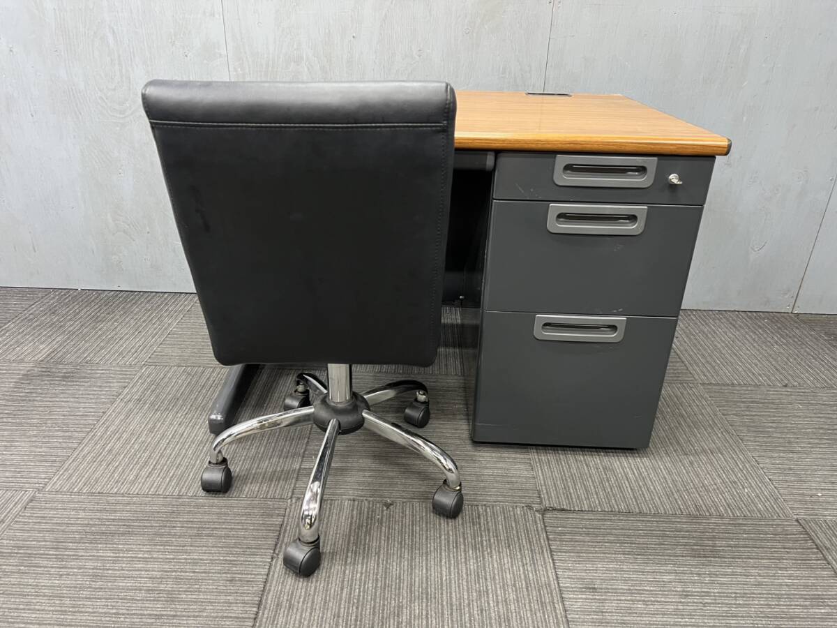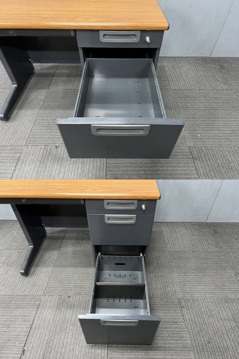 ◆管490◆自社便対応地域あり◆プラス製◆片袖机 幅1000mm 鍵付き◆アスクル◆OAチェアー◆天板 木目 ナチュラル 茶色 ブラウン系