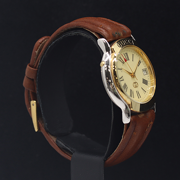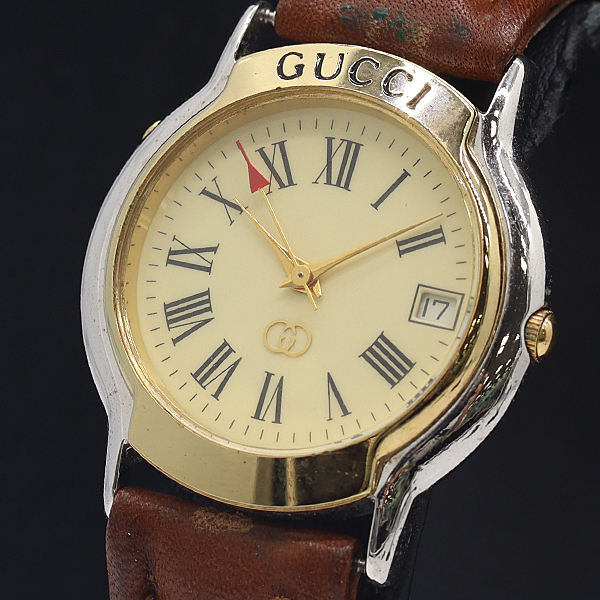1円 稼働 グッチ 8200M アイボリー文字盤 QZ メンズ腕時計 0506000 9RET KTU