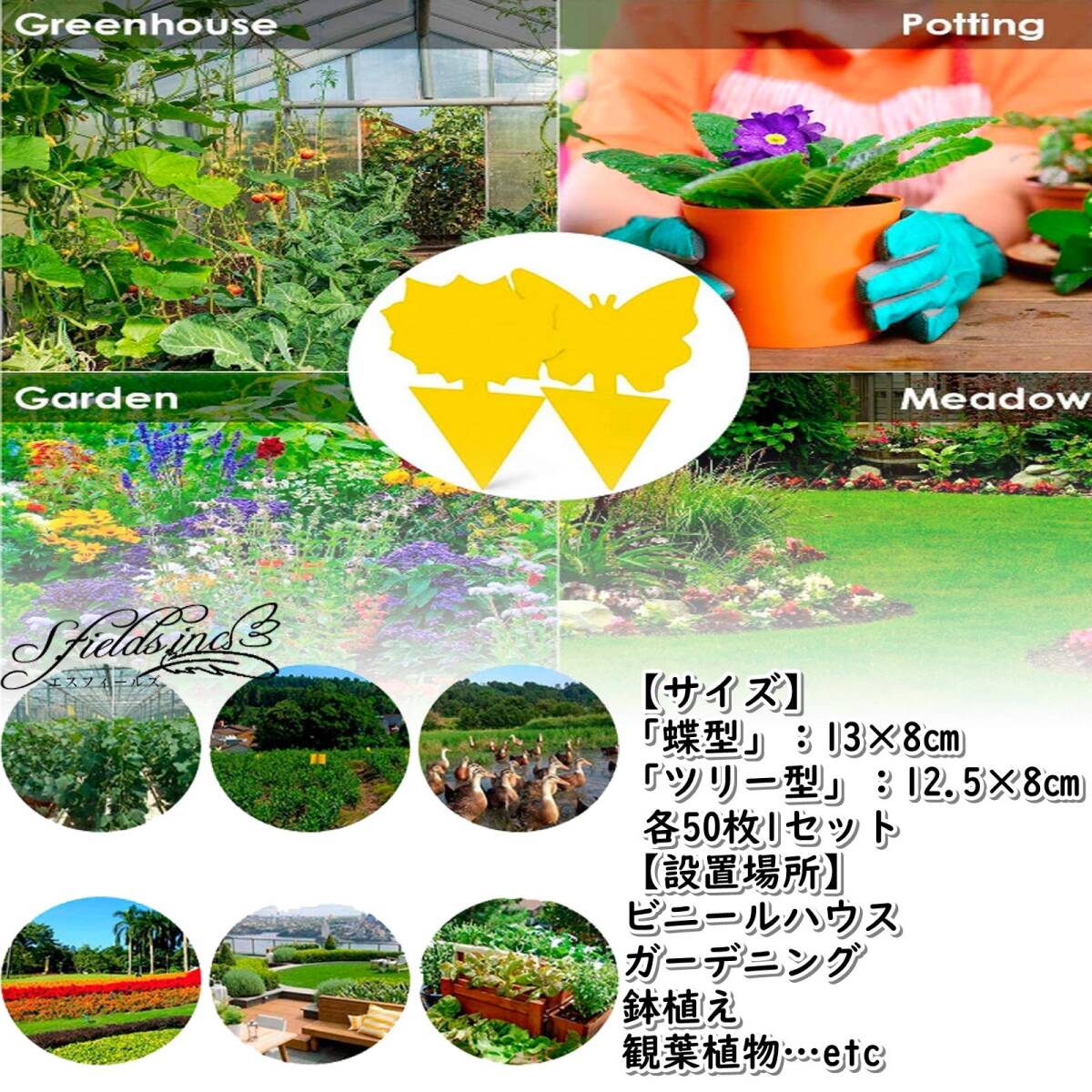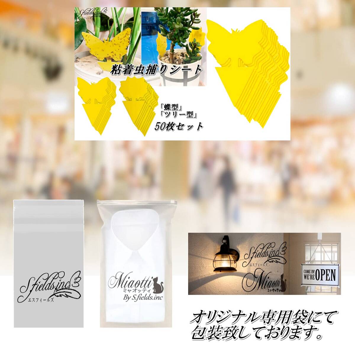 S.fields.inc 捕虫シート 防虫シート 50枚セット 粘着性 害虫捕獲粘着紙 虫取りシート 植木鉢 畑 (ツリー型)