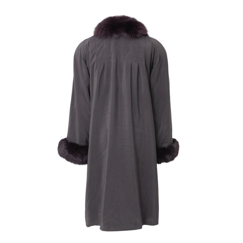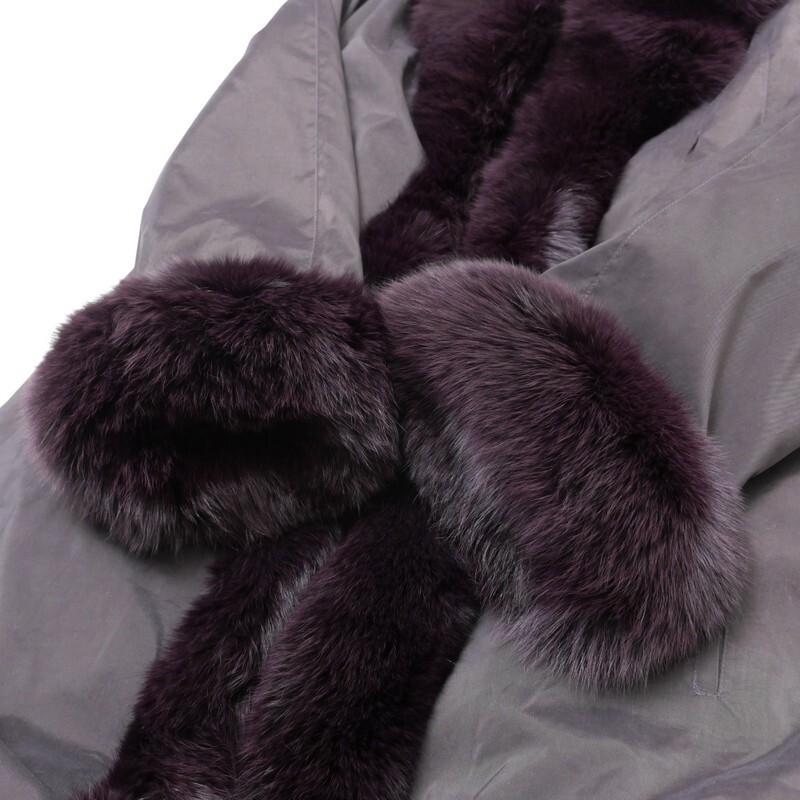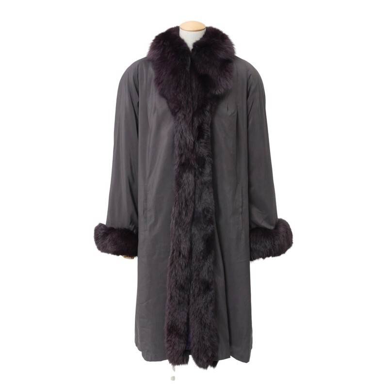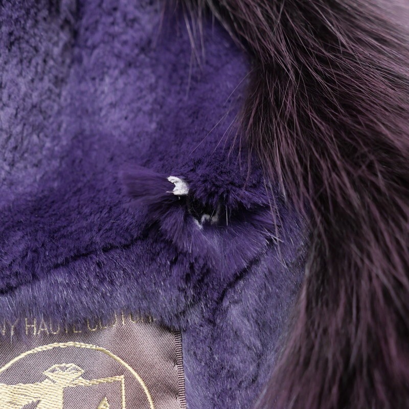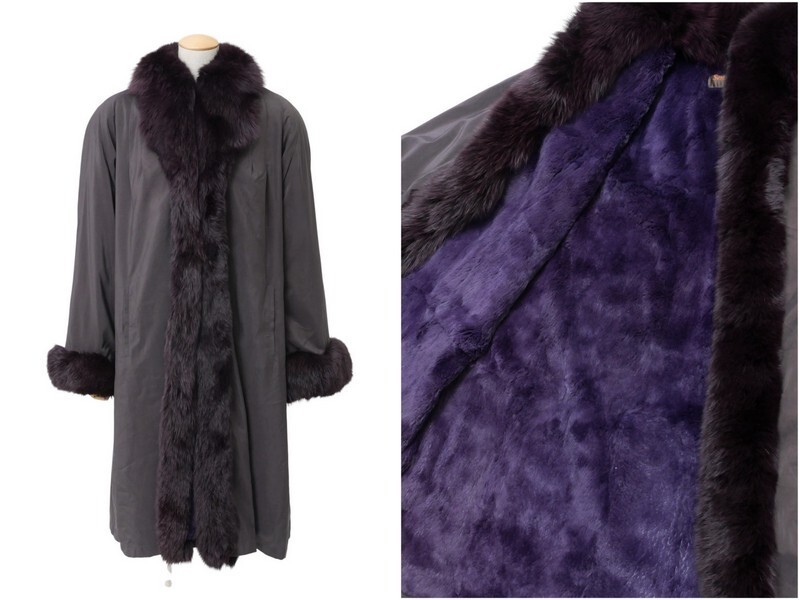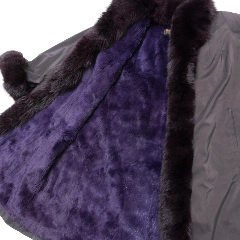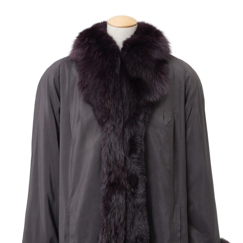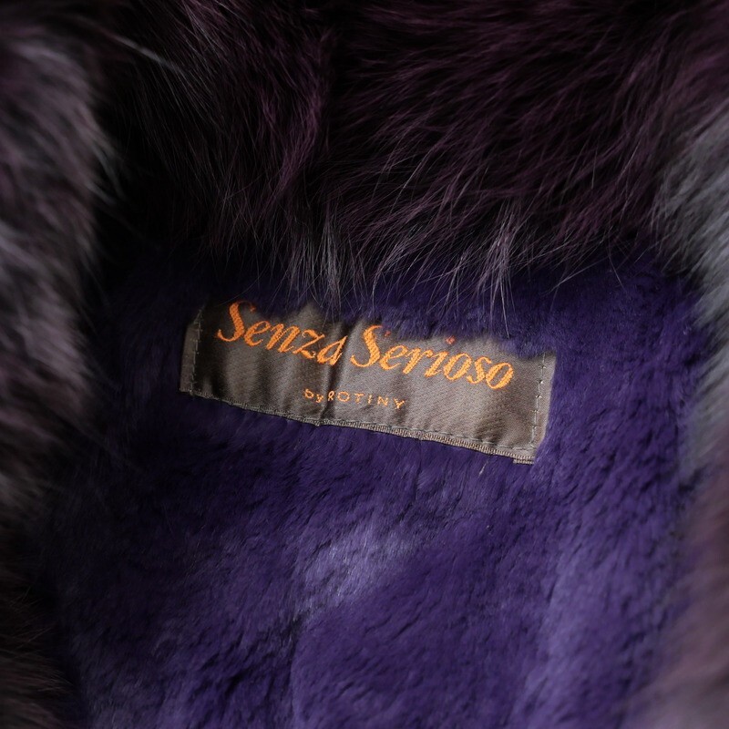 GS3046△ROTINY by senza serioso ロティ二ー 襟/袖フォックスファー 内:リアルファー 本毛皮 ハーフコート パープル×グレー系 | |||