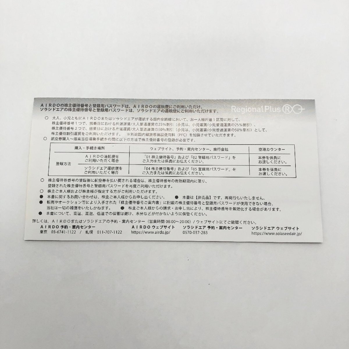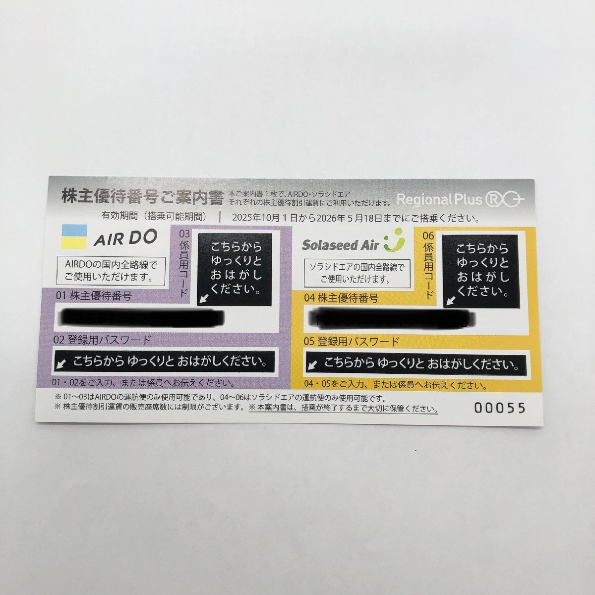| ◎P477【未使用】Regional Plus 株主優待券 AIRDO Solaseed Air エアドゥ ソラシドエア 1枚 有効期間:2025年10月1日~2026年5月18日 (ma) | |
