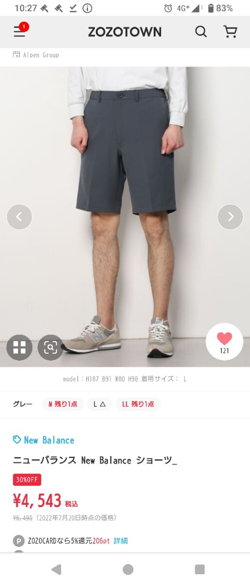 シンプルなデザインのグレーのショートパンツ、ポリエステル素材で快適な着心地。定価6490円の品。