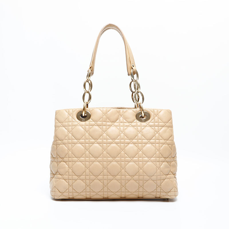 極美品 Christian Dior カナージュ ラムスキン チェーン トート ショルダーバッグ ベージュ