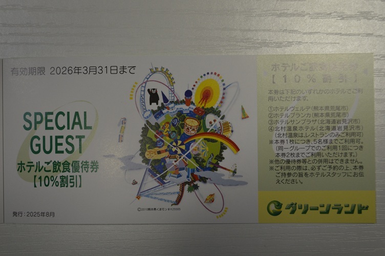 (SPECIAL GEST ホテルご飲食優待券10%割引 2枚付)
