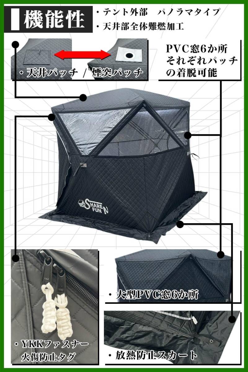 • 【テント生地】ポリエステル210Dオックスフォード(中綿120g / ㎡ ) キルティング加工 耐久性・保温性に優れるサウナテントに適した仕様になっています。雨天での野外使用は想定しておりませんのでご了承ください。