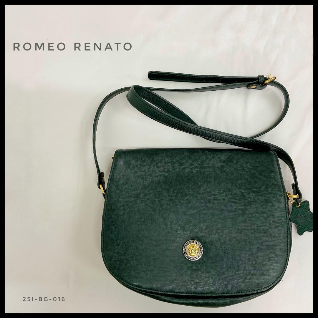 ROMEO RENATOのレザーショルダーバッグ。上品なグリーンカラーで高級感漂うデザイン。普段使いからお出かけまで幅広く活躍します。