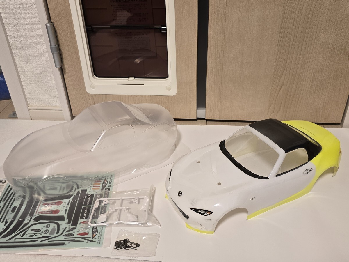 タミヤ 塗装済ロードスター軽量ボディと未塗装新品のレギュラーボディのセットです。