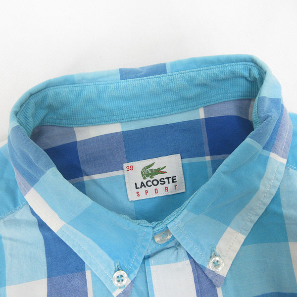 G■ラコステ/LACOSTE SPORTS 半袖BDシャツ/チェック柄【39】青系/men's/93【中古】■