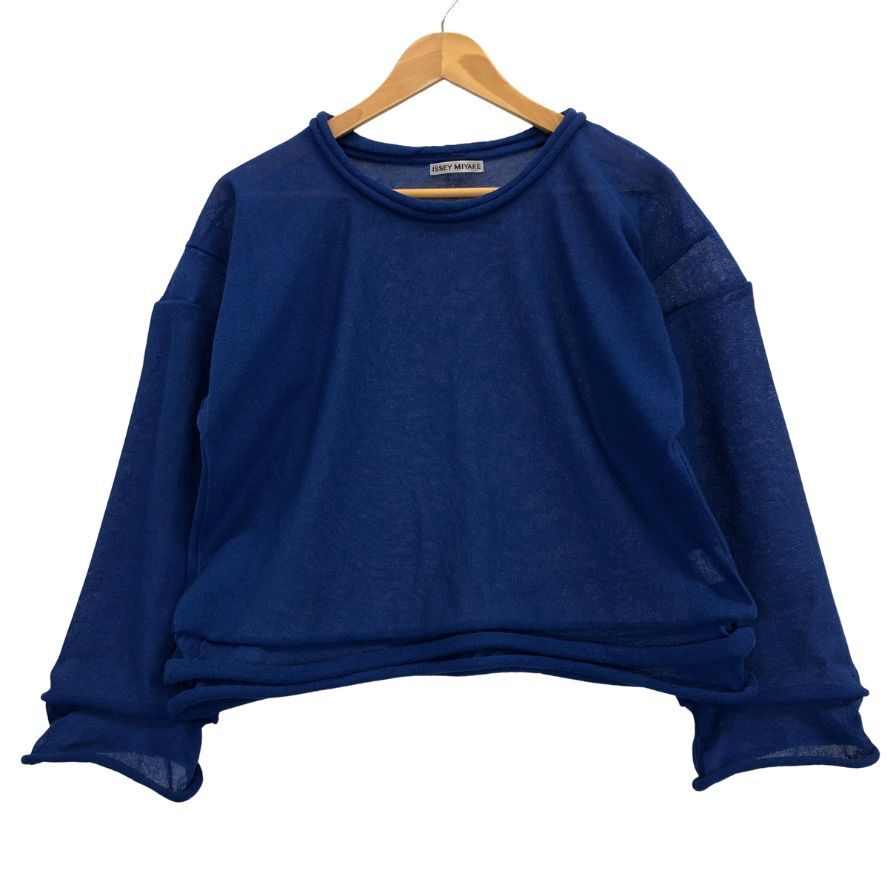 極美品◆ニット・セーター イッセイミヤケ セーター ラウンドネック ネイビー サイズ2 レディース IM92KN515 ISSEY MIYAKE 【AFB26】