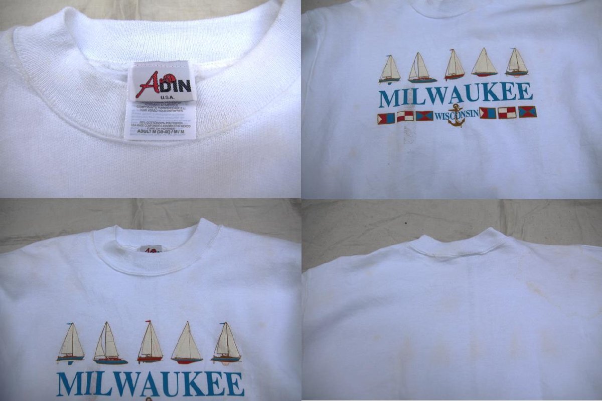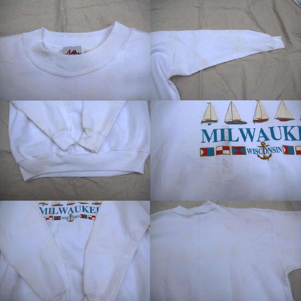 80s 90s VINTAGE ヴィンテージ USED 古着 Adin L/S Print Sweat Shirts プリントスウェットシャツ Milwaukee White 白 M ミルウォーキー