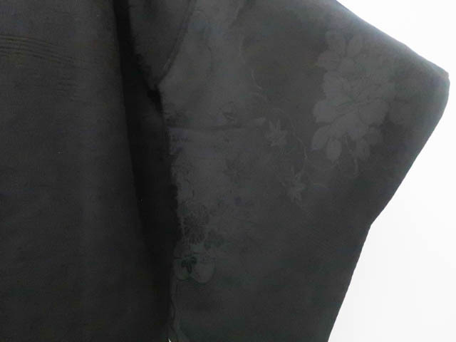 リサイクル商品のため、羽裏にしみと衿糸飛び出しがございますがご着用いただけると存じます。 地色は 黒です。 1枚目の画像が近いお色かと思われます。 素材は正絹です。 |