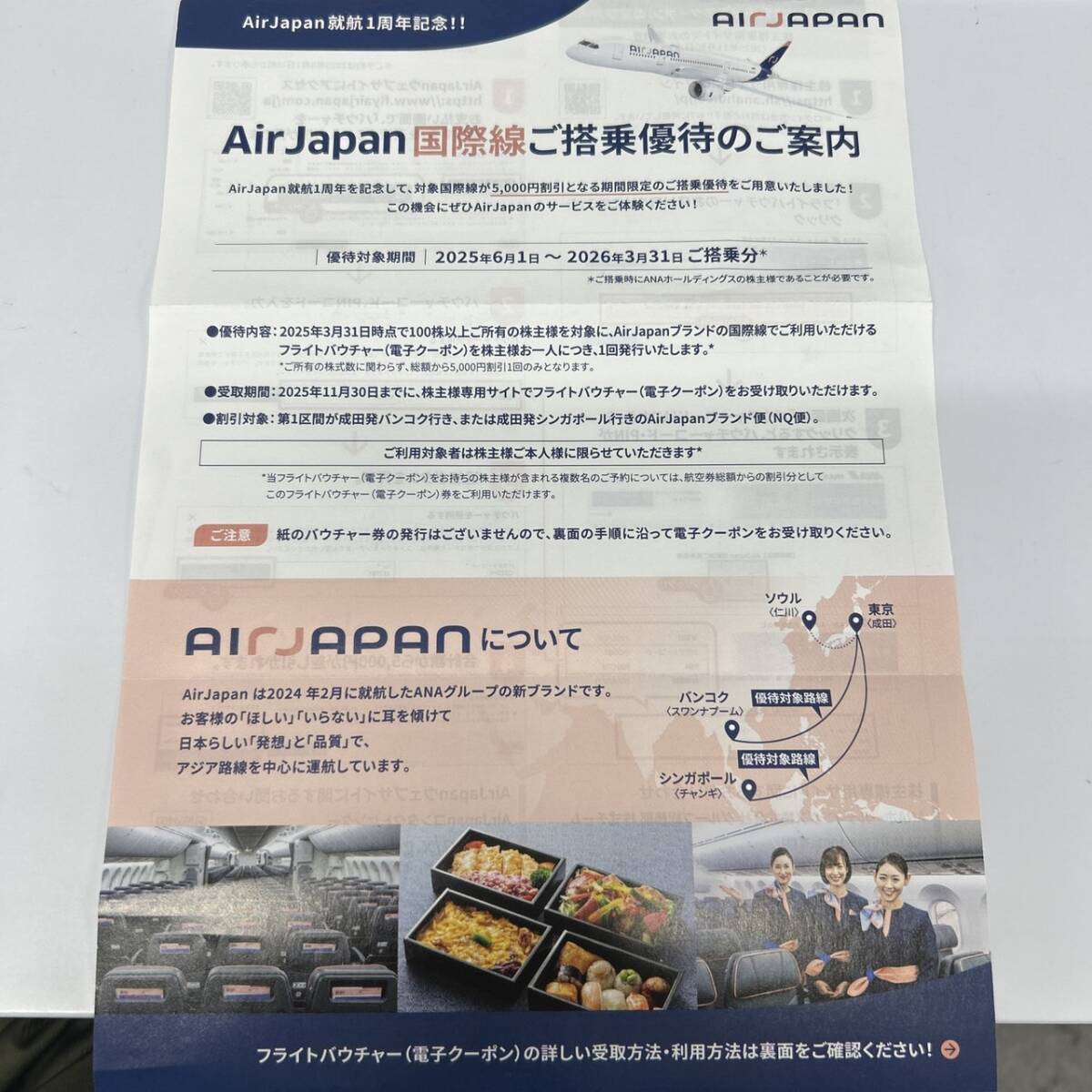 AirJapan国際線搭乗優待券5000円割引バウチャーになります。