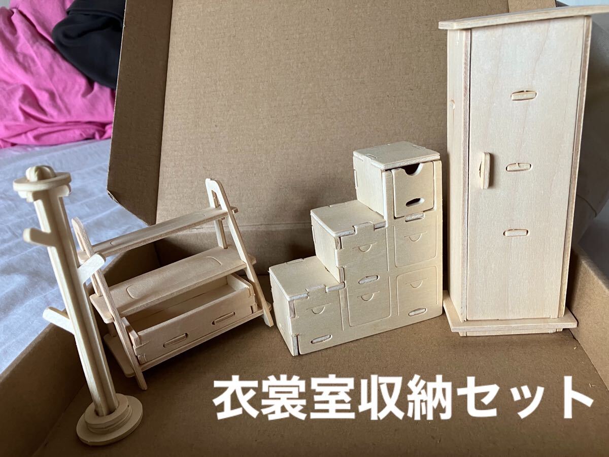 シルバニアファミリー トールペイント 白木素材 衣裳室収納セットです。