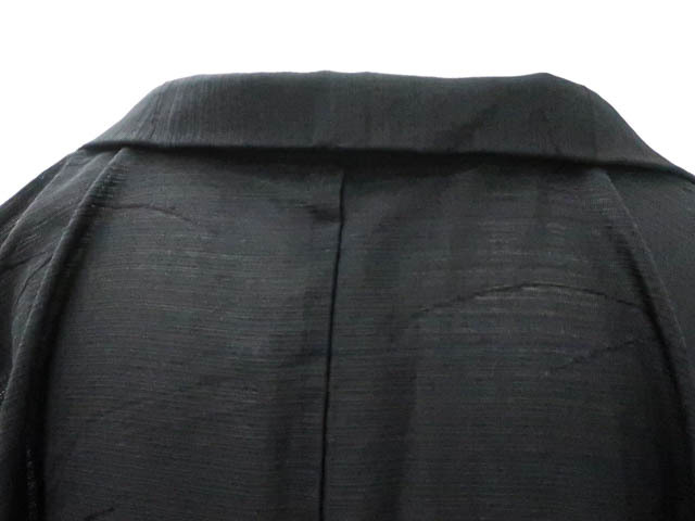 リサイクル商品のため、衿など全体の所々に薄汚れがございますが着用可能なお品です。 地色は黒です。 1枚目の画像が近いお色かと思われます。 素材は正絹です。 |